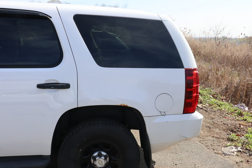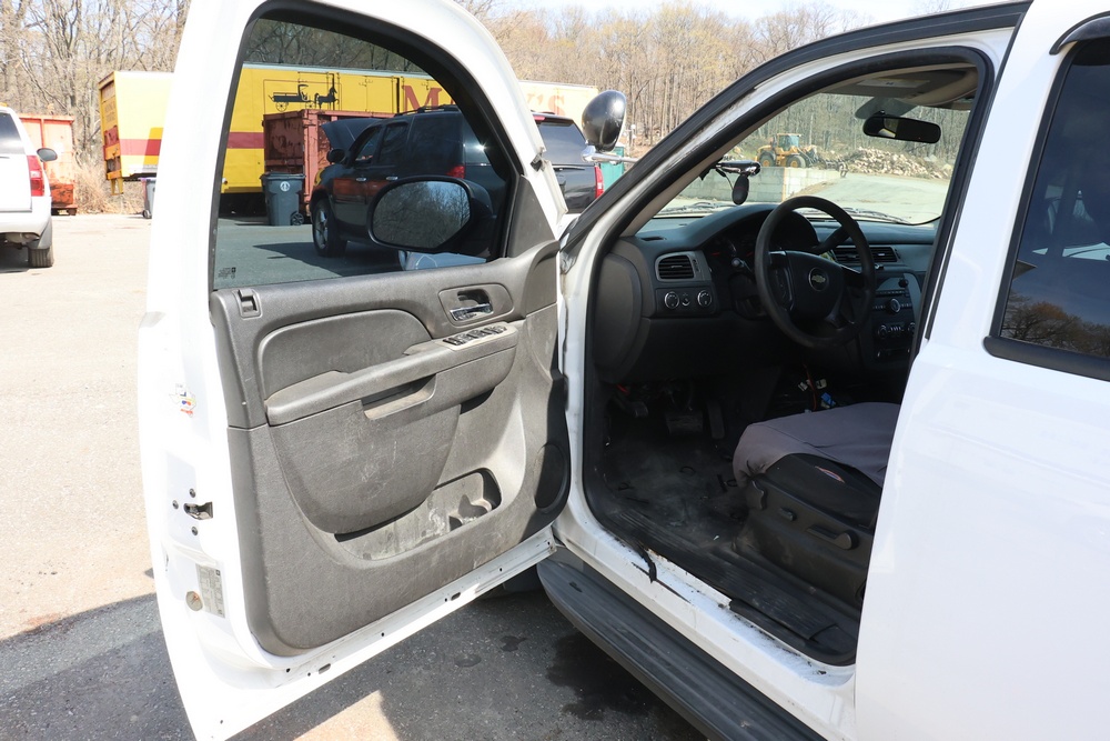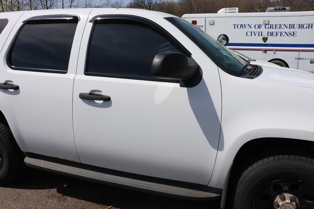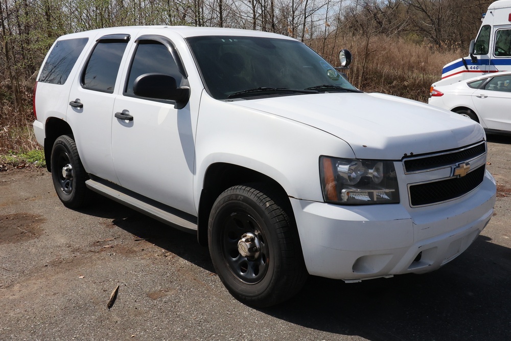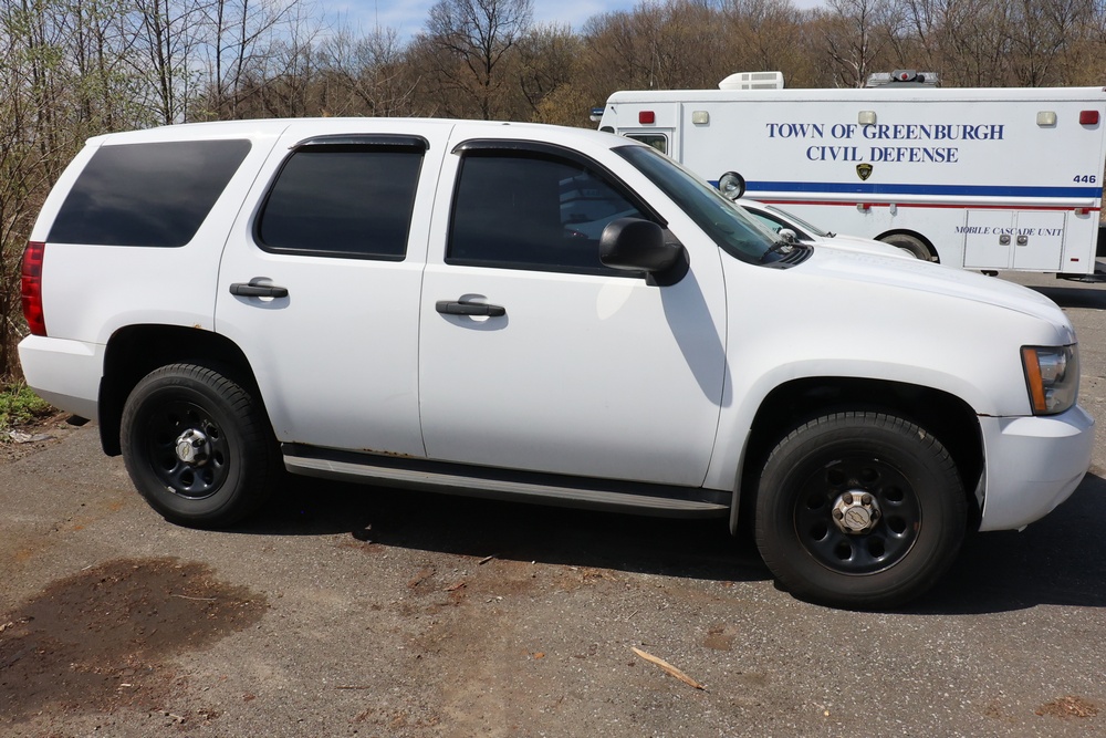 Items include 2014 Ford Fusion, 2015 Ford Fusion, 2012 Chevy Tahoe, 2010 Chevy Tahoe, 1990 Military Generator, 2003 GMC W4500 Box Truck, 2004 Mack dump truck, 2011 Ford F-350, 2014 Ford F-350, 2015 Ford Escape, 2001 International SCNV20 box van, Low Band 2-Way Radios, and more. Items are located in Irvington NY.