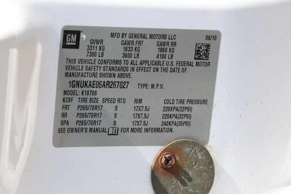 2010 Chevy Tahoe (SUV). VIN 1GNUKAE06AR267027. Odometer reading: 123202. Does not run or drive. Turns over, doesn't start. Electrical issues and rust. Title and key available.