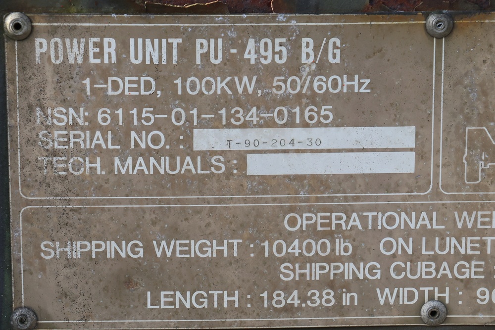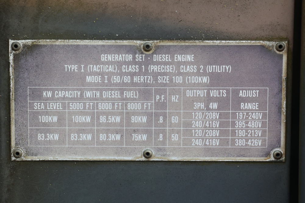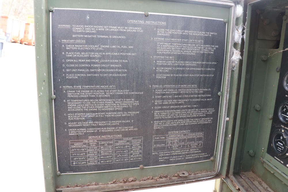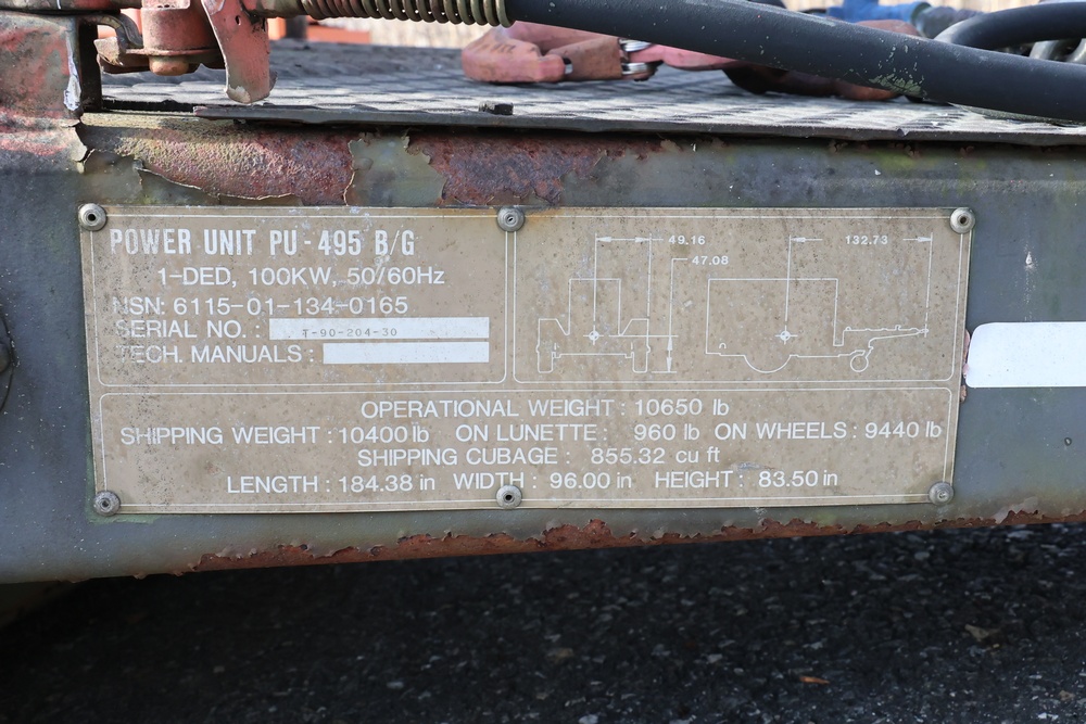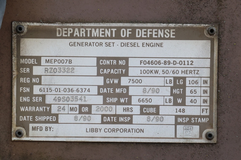 1990 Military Generator. MEP007B / S/N # RZ03322. Hour meter reading: 94. Unknown operating condition.