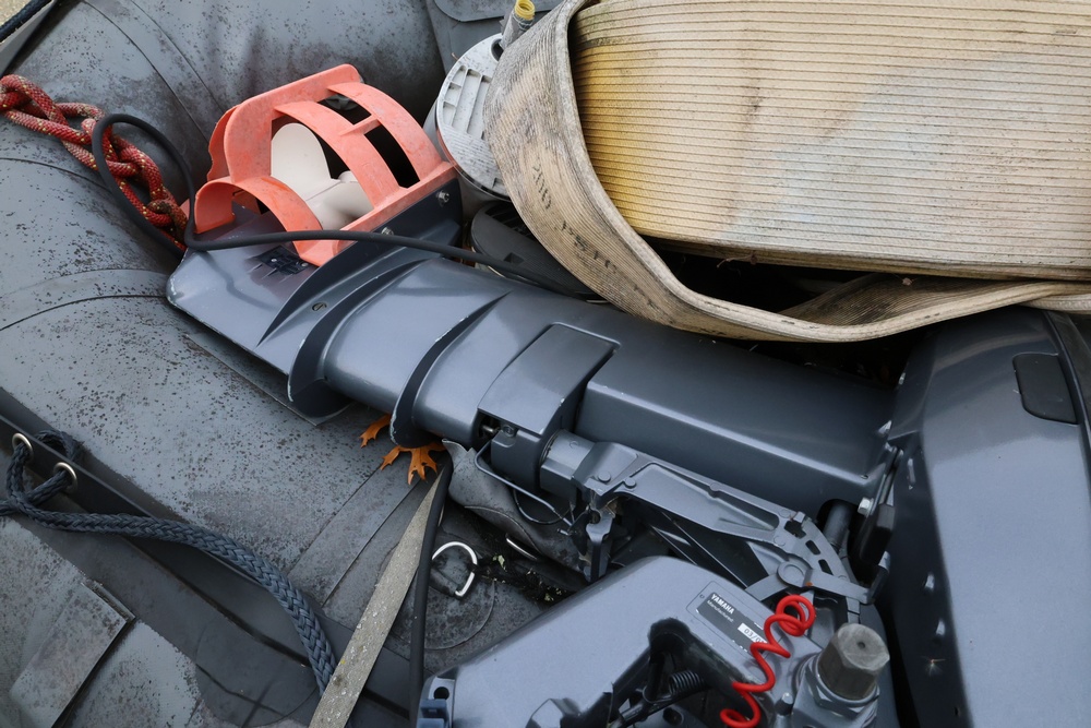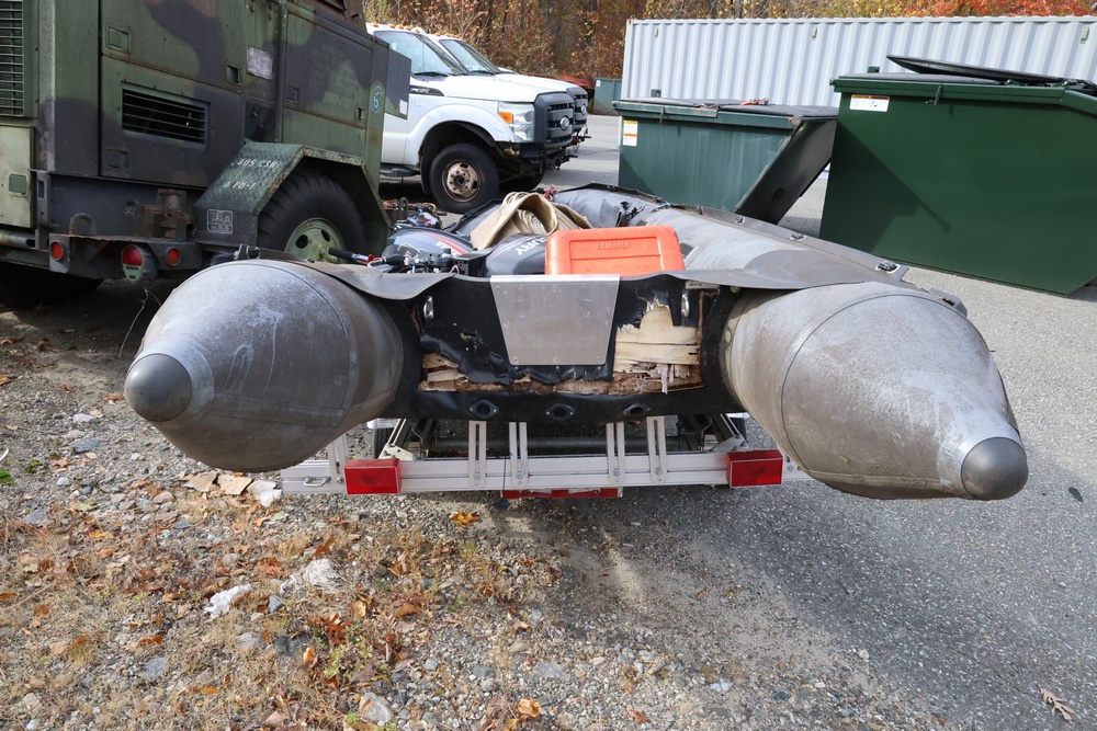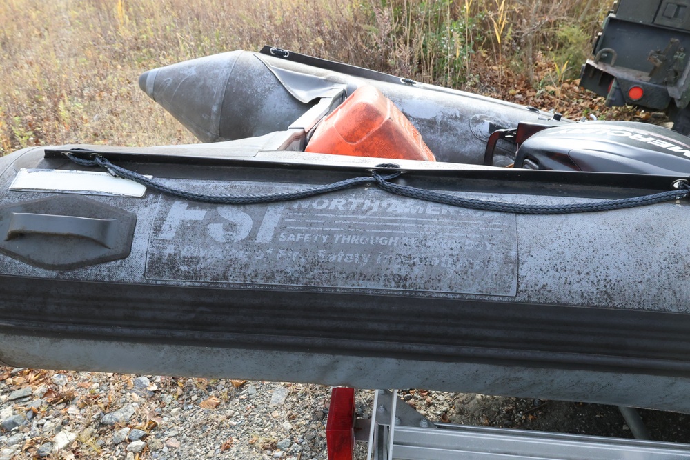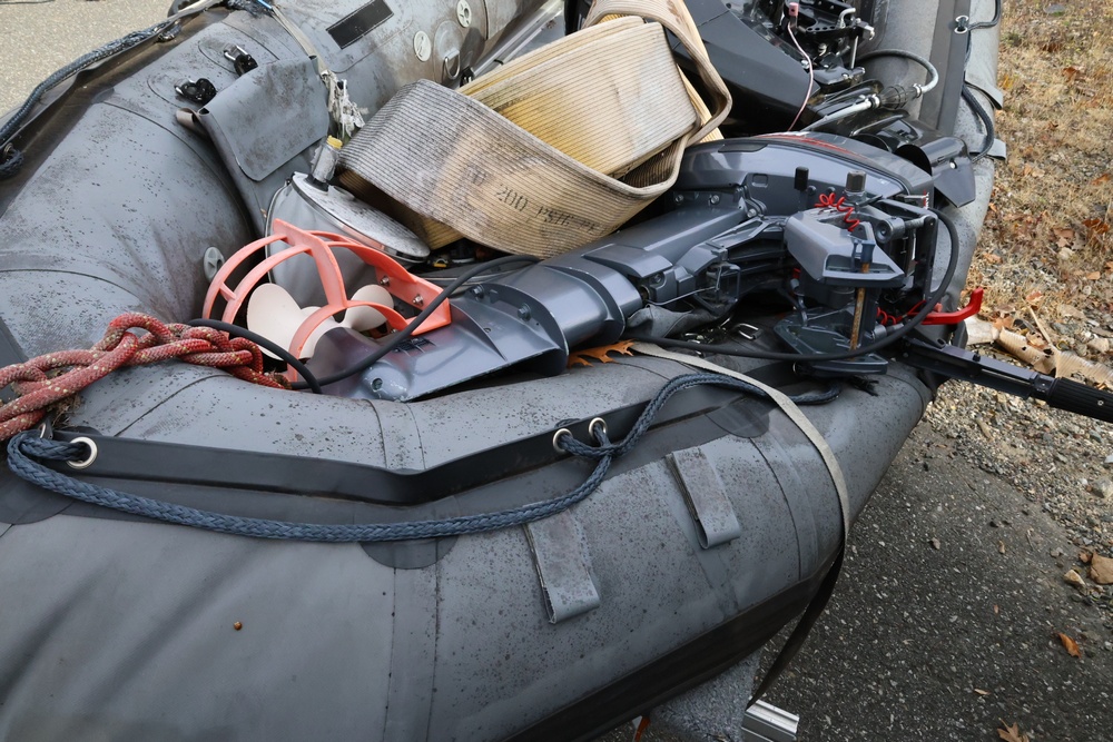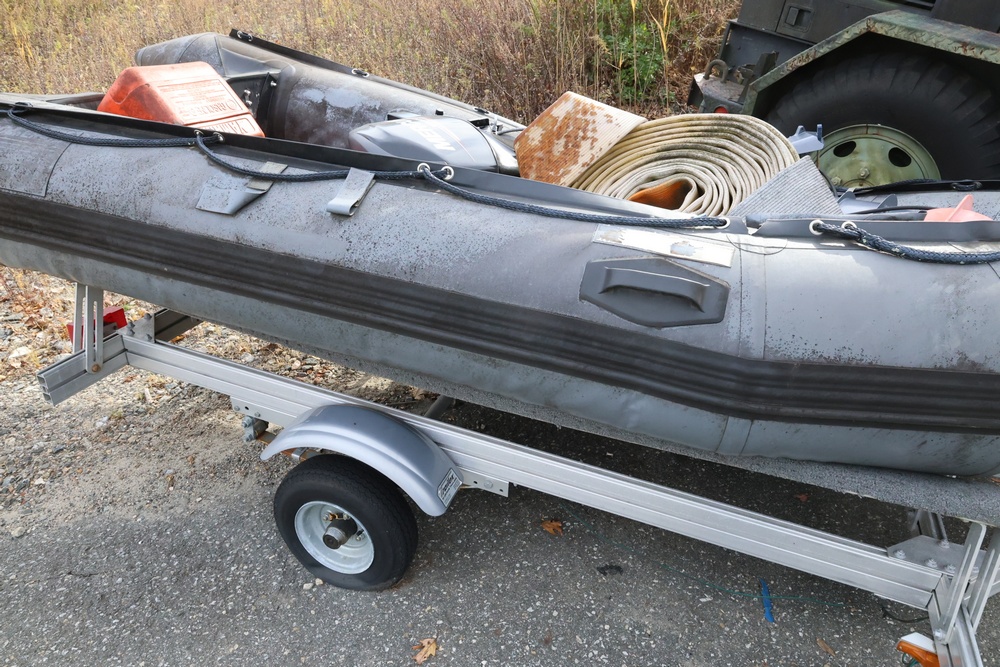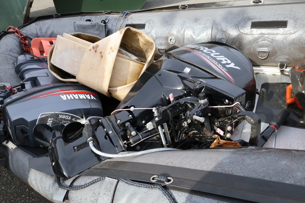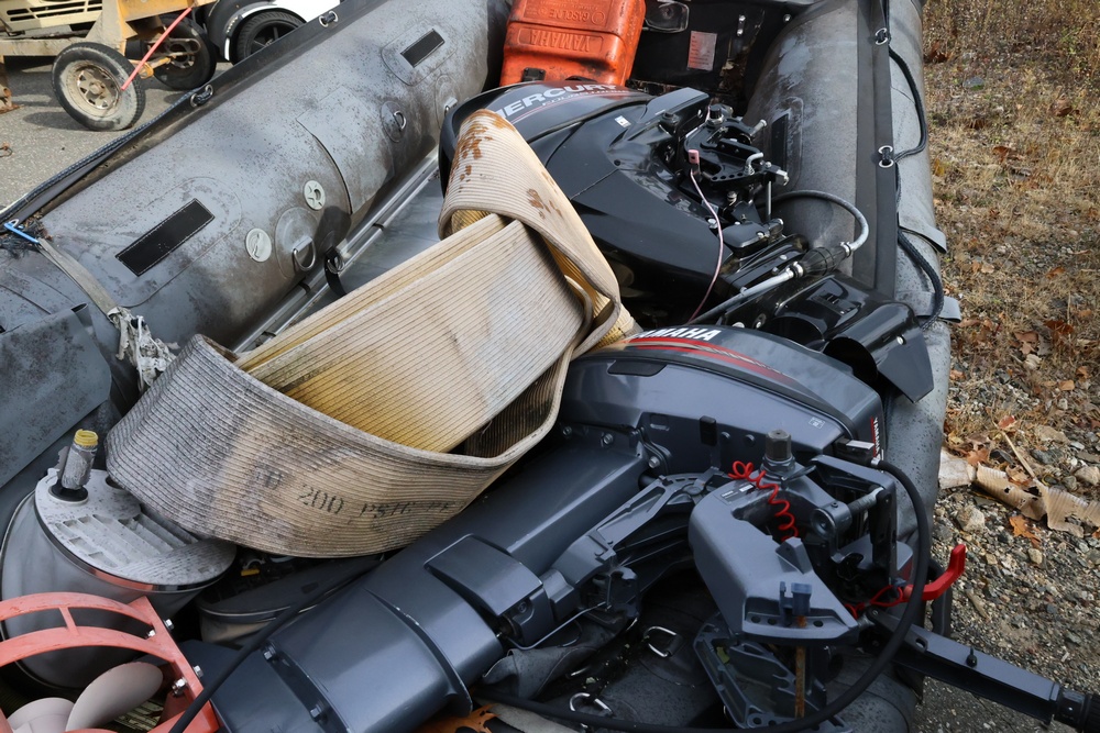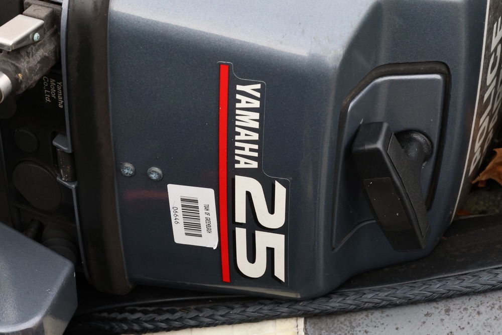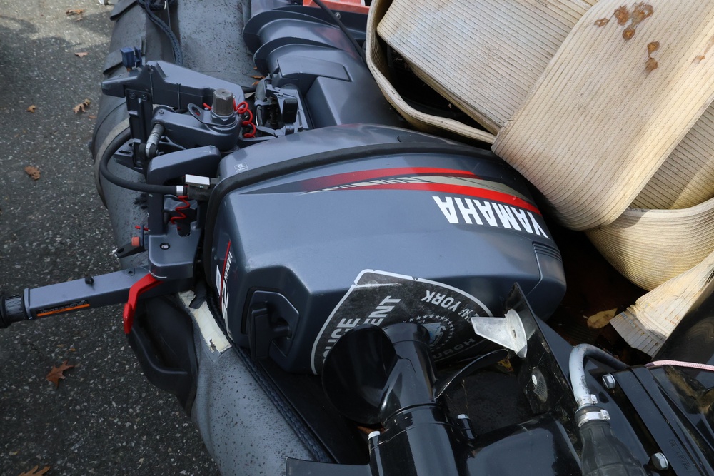 FSI Inflatable Flat Bottom Boat; model FSI-F-YRR385D FSI00006F313. Trailex Aluminum Inflatable Boat Trailer; model UT-850MIIIWT. Mercury Outboard Motor; model 1A25203EK Fourstroke 0R587513. Yamaha Boat Motor; model 25MLHKZ 6L2KL 0100452. Seller reports: motors were both working when removed from service.