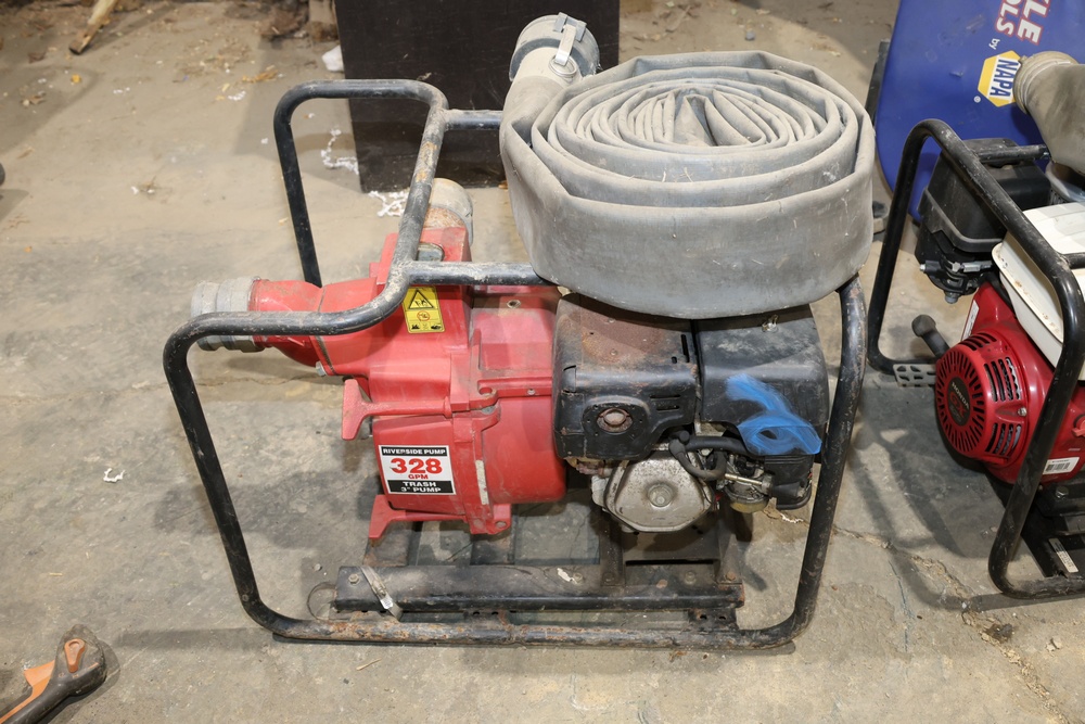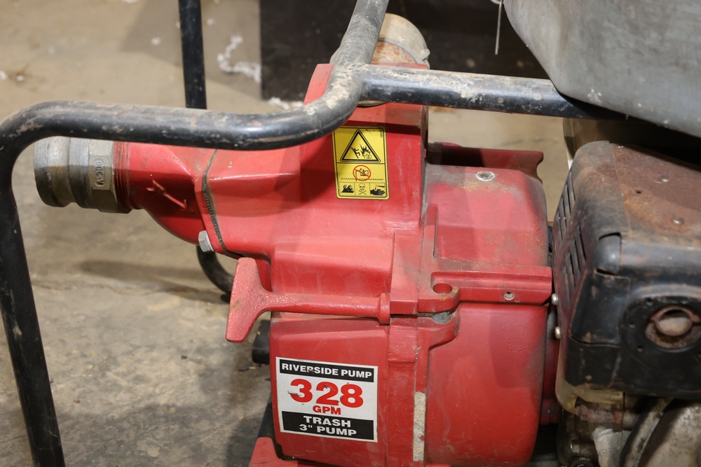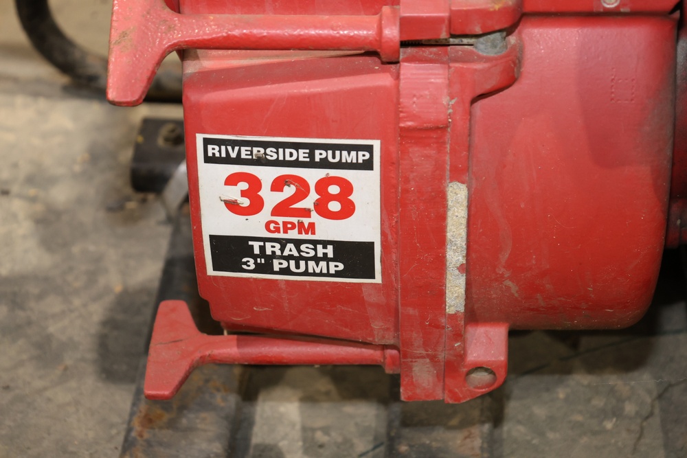 Riverside pump 328GPM 3" trash pump with a Honda GX240 8.0 engine. Seller reports ran when stored.