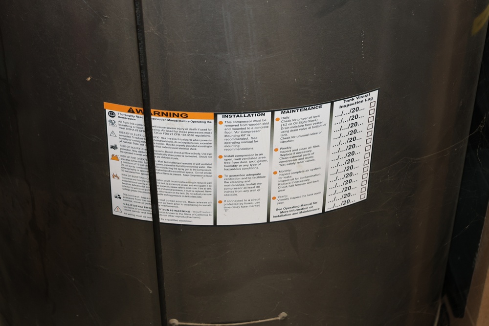 Napa Industrial air compressor with pump number 131222700. Hardwired to 230V 1-phase electric. Seller will disconnect prior to pickup.