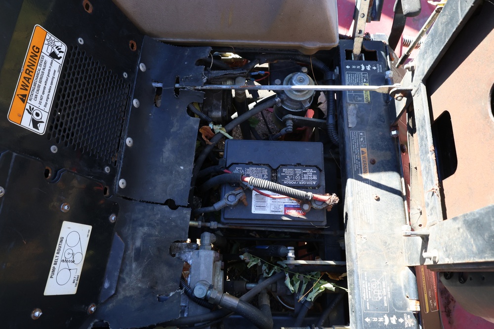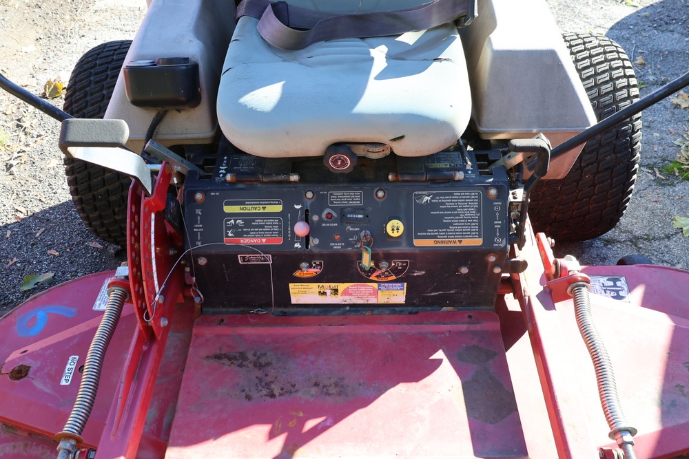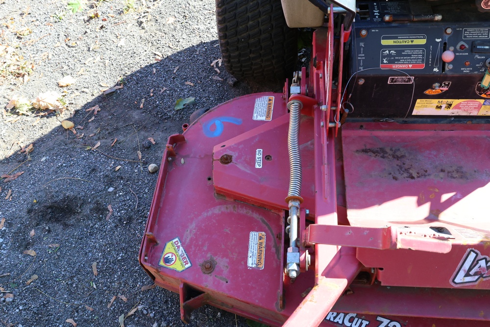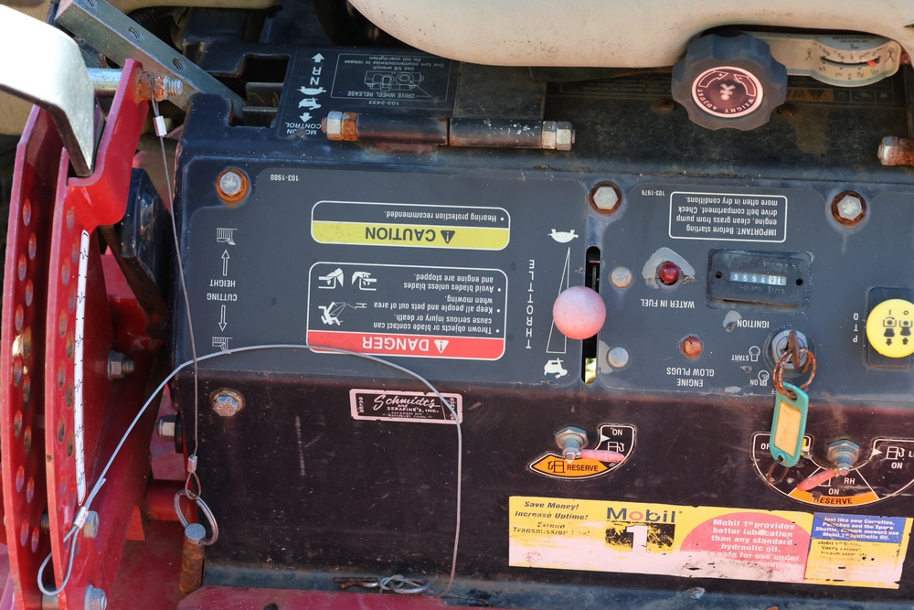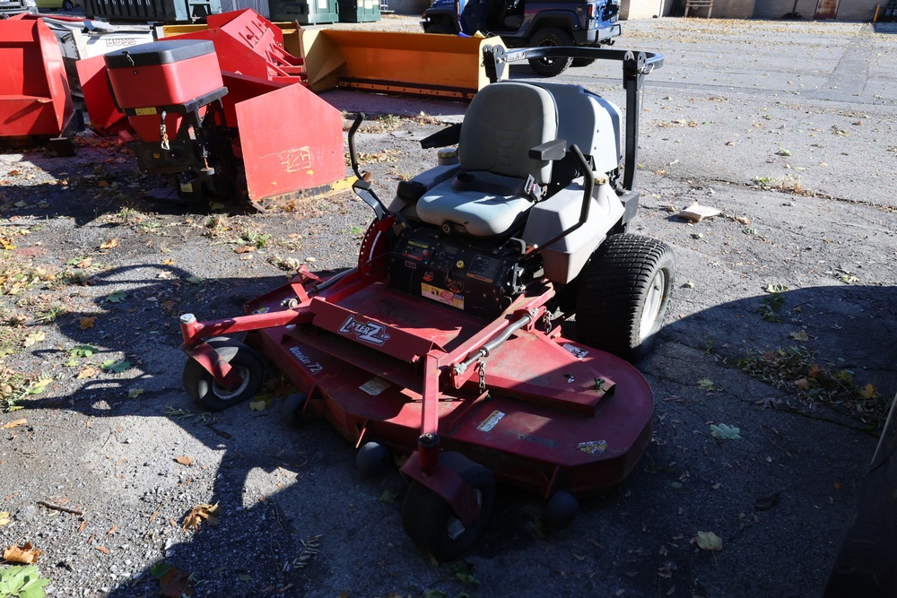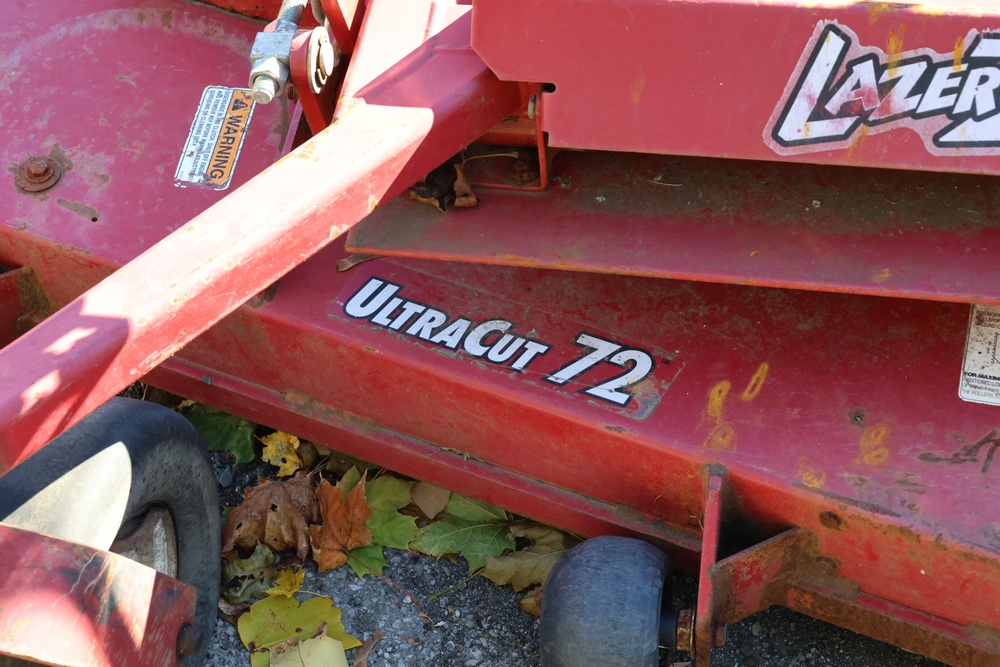 Exmark Lazer Z XP commercial mower manufactured by Exmark Mfg. Co., Inc., Beatrice, Nebraska, USA. The model number is LZ27DD724 and the serial number is 329140. The mower is equipped with an UltraCut 72-inch deck and shows 3,554.9 hours on the meter. Seller reports: ran when parked, doesn't start.