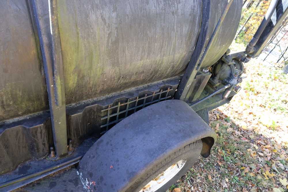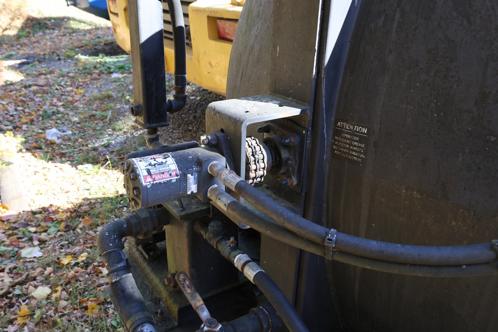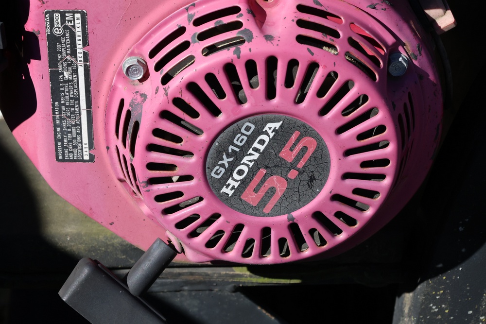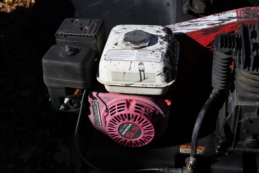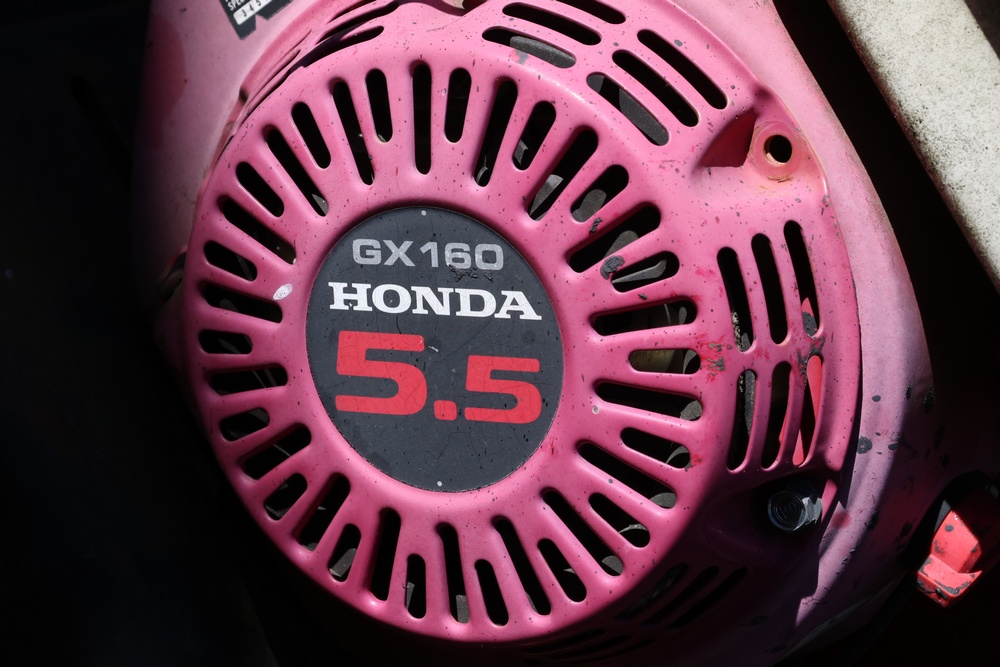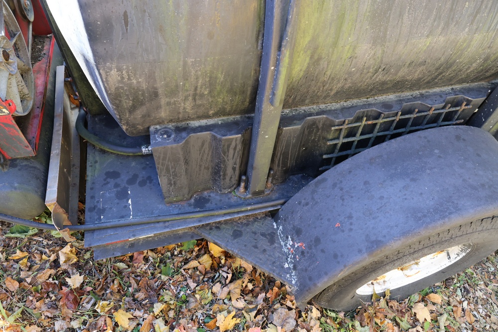 Equipment MFG Inc tow behind seal coat tank with Honda GX160 engine. Unknown if operational.