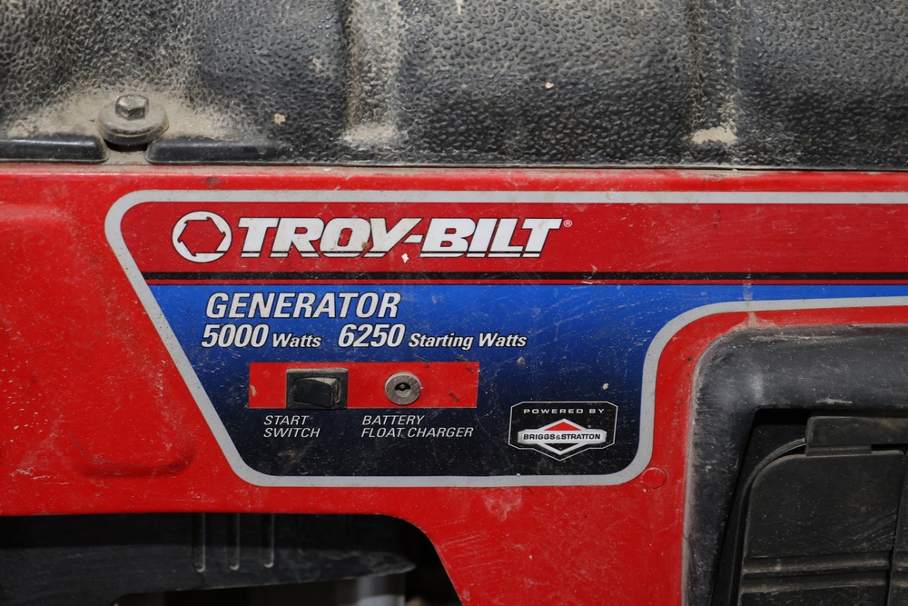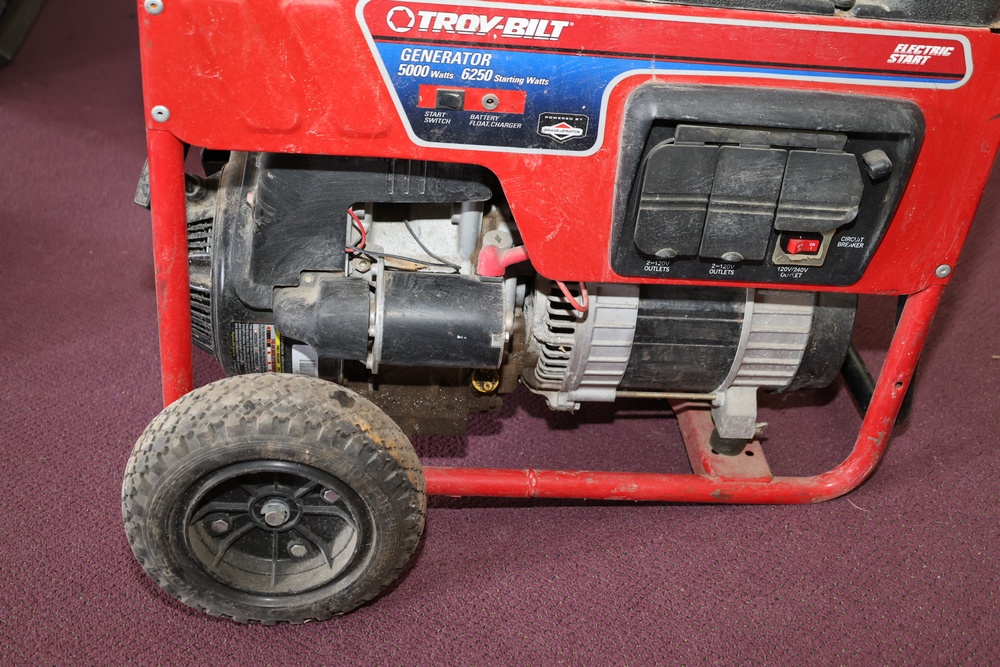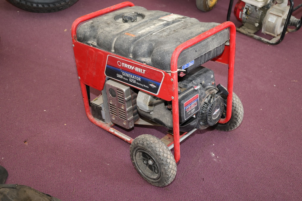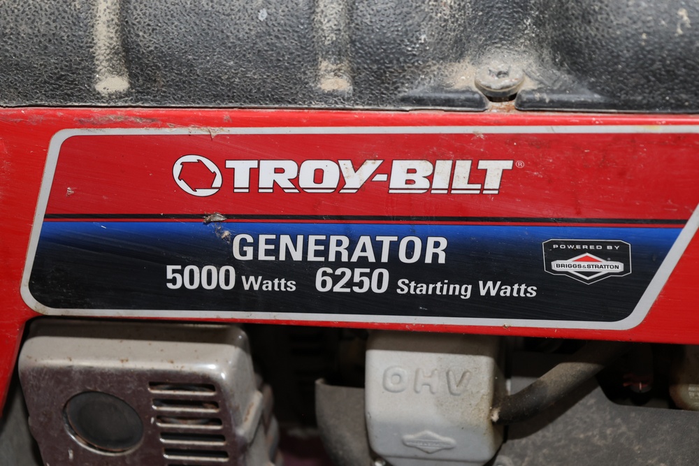 Troy-Bilt generator powered by a Briggs & Stratton engine, rated at 5000 running watts and 6250 starting watts. Seller reports: for parts or repair.