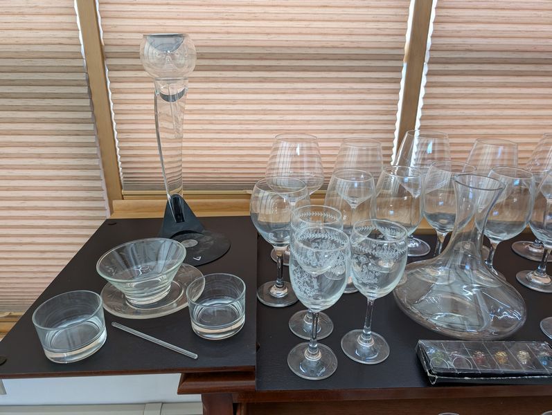 Items include American Interiors cherry dovetailed buffet server; Marlborough Country Barn fully-upholstered skirted chair; Waterford stemware; ornate German clocks; Cuisinart oven; Breville grinder; LL Bean rugs; Presto electric skillet; pair of Lancer speakers & more. Items are located in East Hartford, CT.