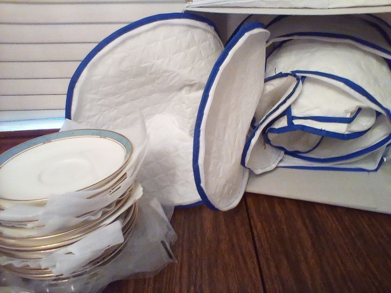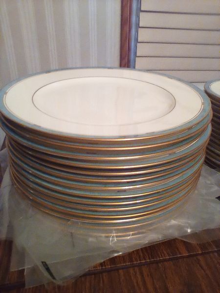 Pfaltzgraff "Patina" Dish Set. Pfaltzgraff 5-pc, serv/16 dish set, incl: 11" dinner dish; luncheon plate; bread dish; cup; saucer with China storage containers. See photos for pattern design. Most appear unused.