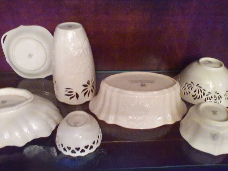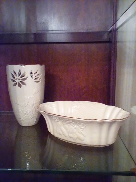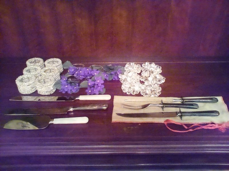 Quality Entertaining, featuring Lenox. Silver plate Oneida cream/sugar/tray (4-pc) set & 3-pc cov butter dish set with extra glass insert; sever pcs Lenox incl: vase, 8"H; (2) oval bowls, each appr 11"L; (1) 8" round bowl; three others (see photos); Leonard Silver carv knife; 3-pc SS carving set; 2-pc cake cutting set; assort napkin rings.