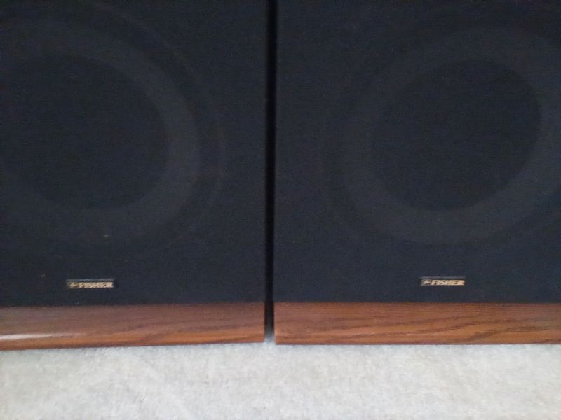 Two Sets of Speakers, featuring Fisher. Pr Fisher speakers #STV-420, each 14"Wx13"Dx30"H; pr AVID #60, each 8"Wx8"Dx28"H.