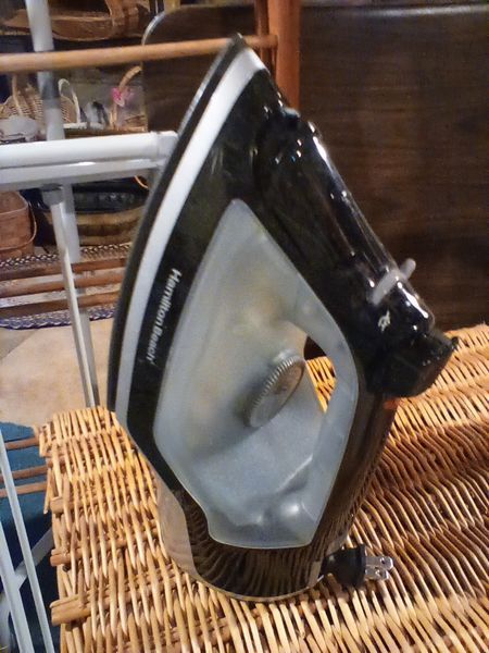 Household Functional, featuring Bissell Steamer. Two clothing racks; (3) snack tables in rack; (2) folding laundry racks; folding card table; wine rack; wicker laundry basket; (2) ironing boards; Hamilton iron; Bissell carpet steamer; port metal file box. Loc in basement. Items seen in background not incl.