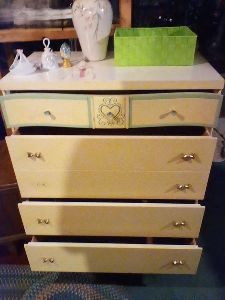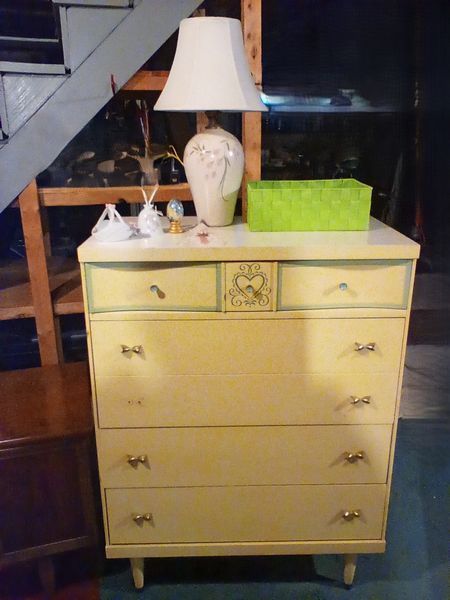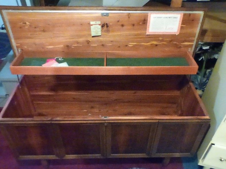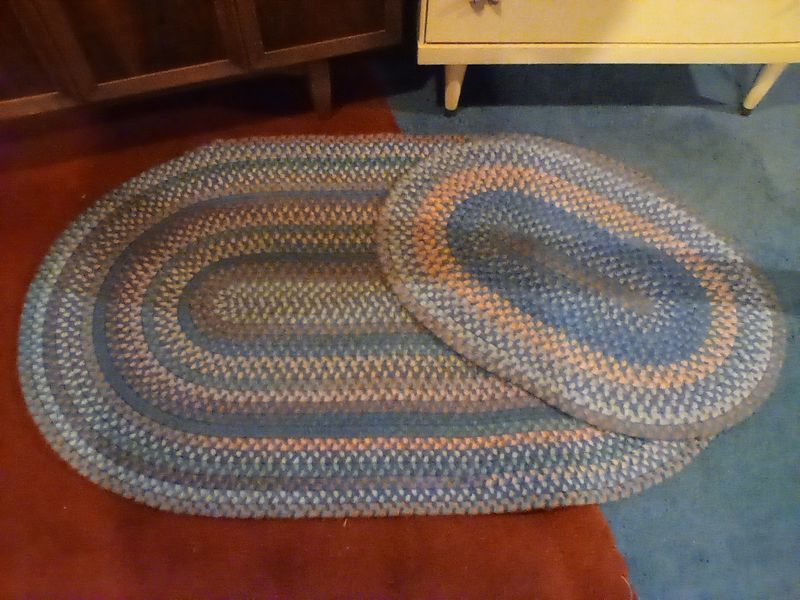 Lane Hope chest, Dresser, Rugs. Lane cedar hope chest; 4-drw (dvtl) dresser (missing one drw pull); two oval braided rugs; table lamp; décor; plush bathrobe. Items seen in background not incl.