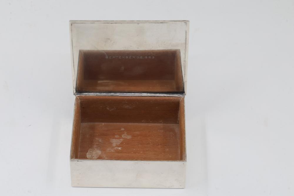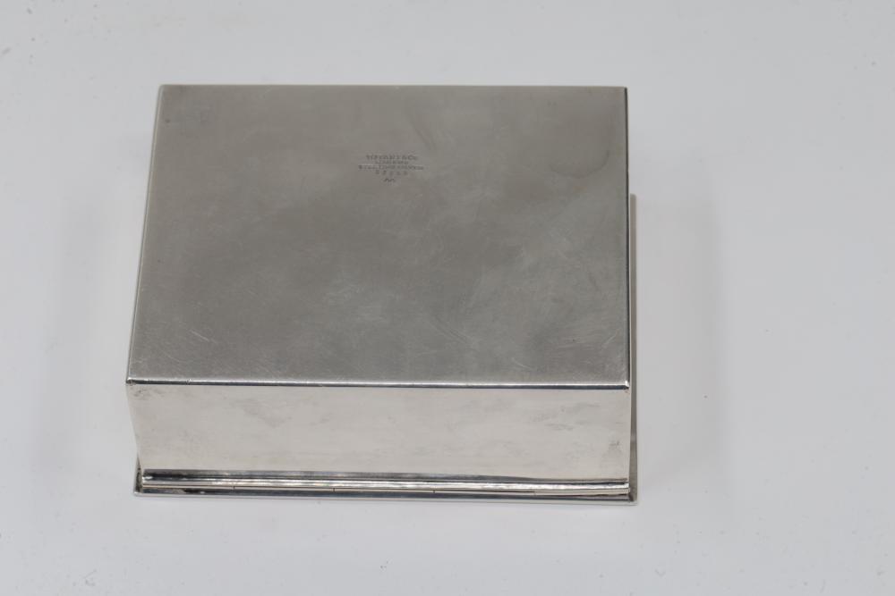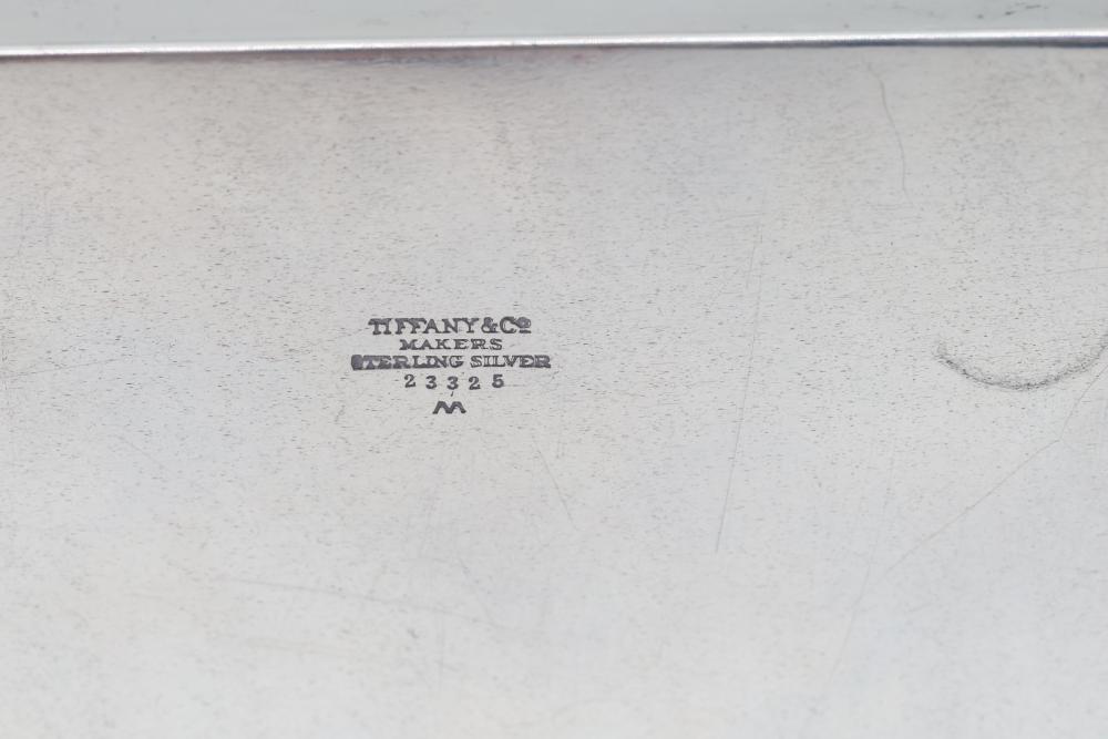 Tiffany & Co. Sterling Silver Box with Inscription and Monogrammed Lid. The box features a hinged lid with an engraved 'R' and an interior dated inscription reading 'September 25, 1952.' The exterior is stamped with 'Tiffany & Co. Makers Sterling Silver 23325 M'. Total weight being 314 grams.