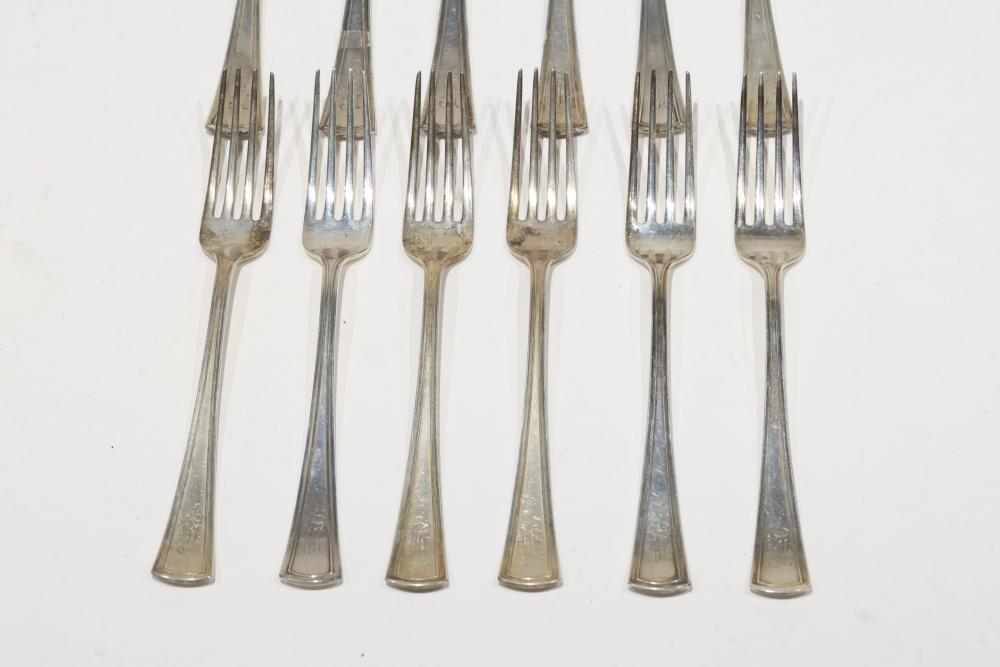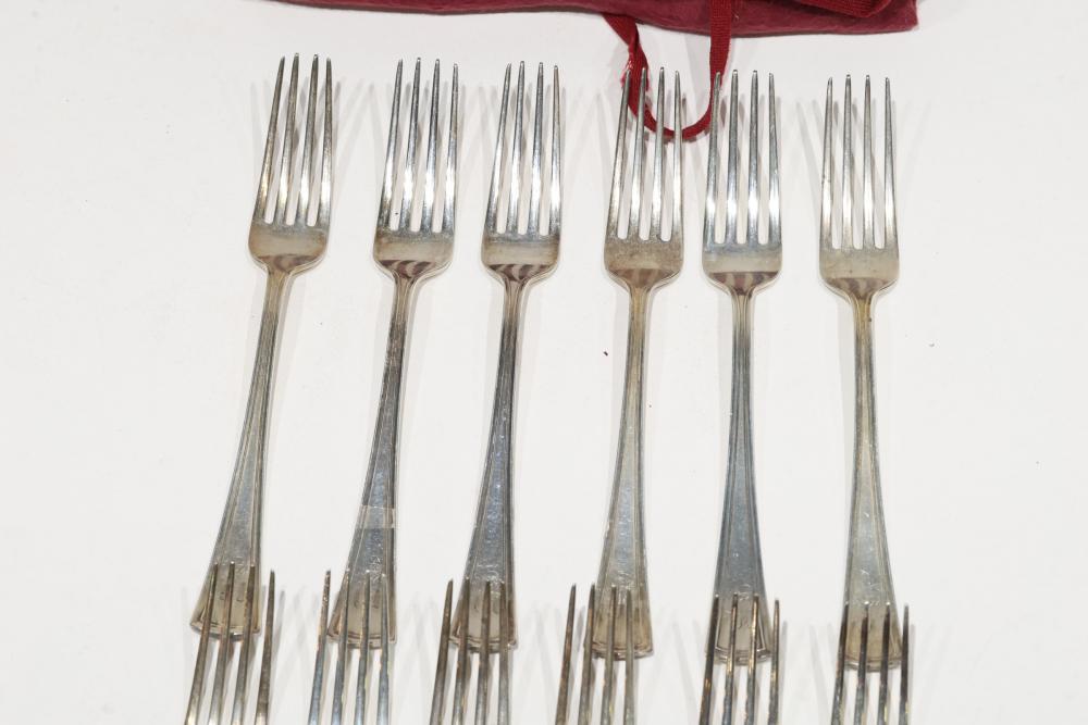 12 Sterling Silver Forks Monogrammed with 'W'. Each fork features a monogrammed 'W' on the handle and a sterling silver hallmark. Total weight being 475 grams.
