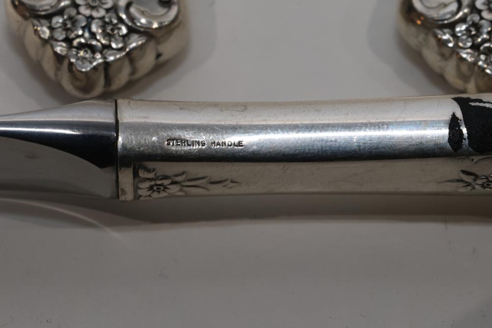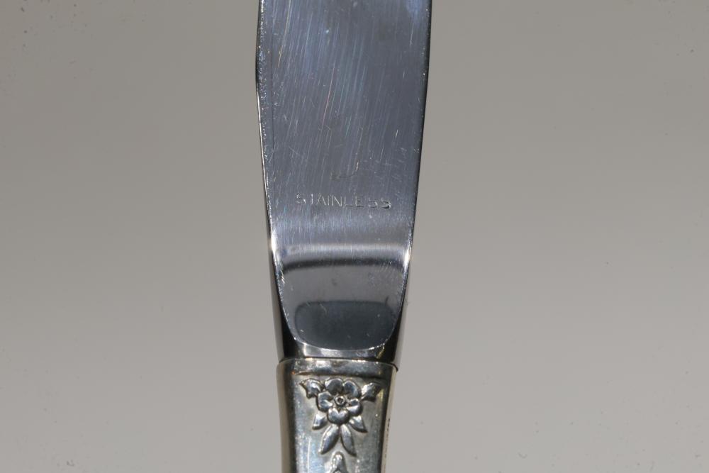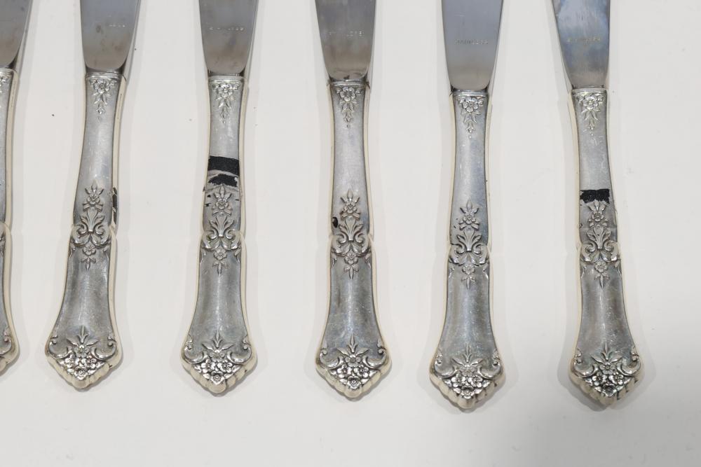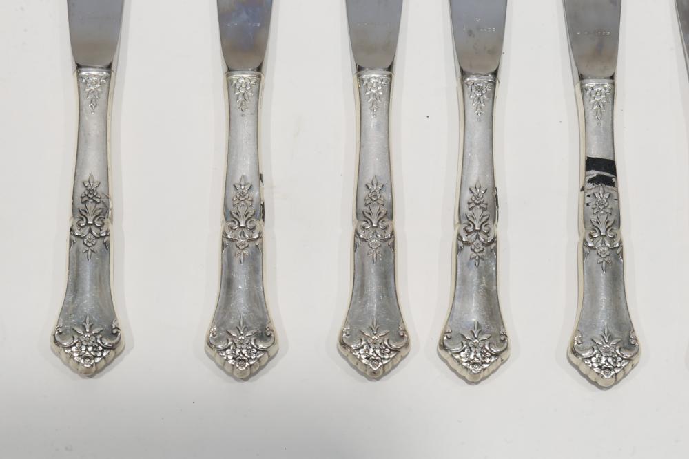 Eight Knives with Sterling Silver Handles. The knives feature stainless steel blades and decorative sterling handles with floral patterns. Total weight being 546 grams.