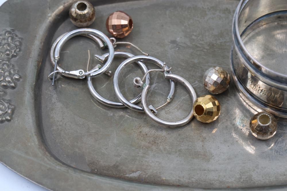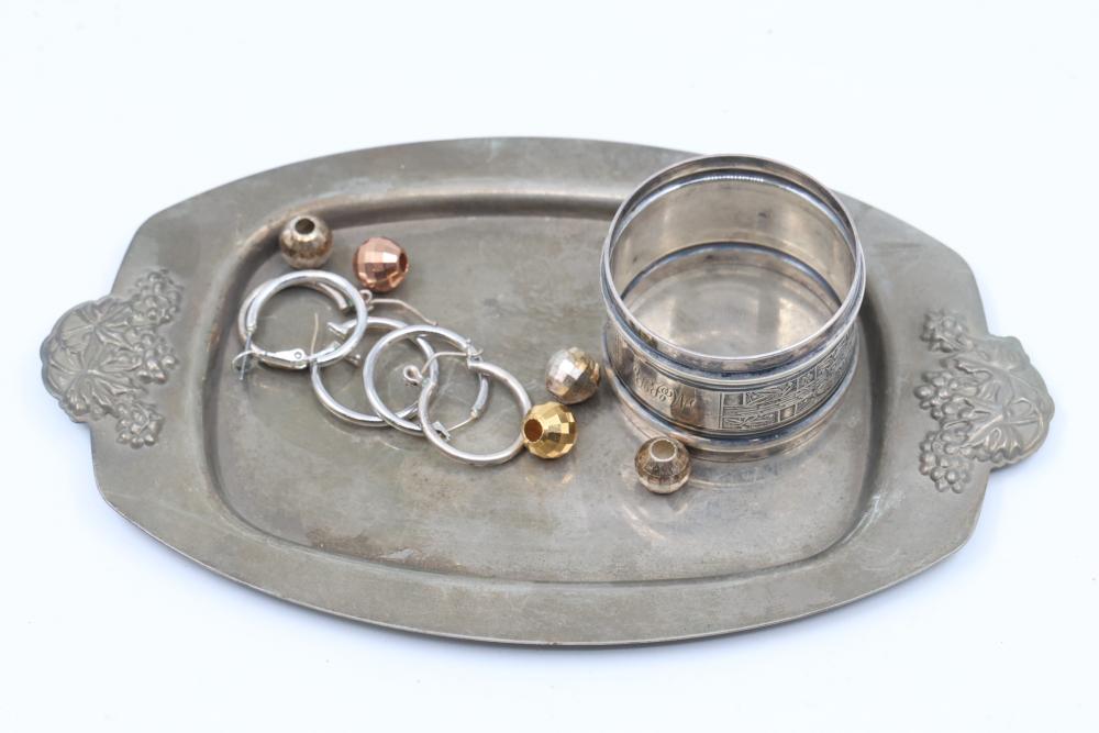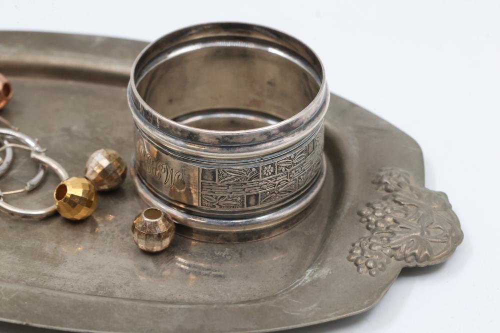 Items include 18K Rose Gold Tiffany & Co. Paloma Picasso Graffiti Narrow Love Kisses Ring; Tiffany & Co. Platinum Bee Pendant Necklace with Diamonds and Yellow Sapphire; Tiffany & Co. Sterling Silver Knife Rests with Wooden Inserts; Tiffany & Co. Platinum Engagement Ring with Diamond and Certification; Tiffany & Co. Crystal Symphony 1999 World Cruise Sterling Pendant; Tiffany & Co. Shirt Studs 14k Gold with Sapphires; Six Sterling Silver Teaspoons with Monogram; Decorative Metal Bowl With Embossed Floral Design; Reed & Barton Mirrosteel Sterling Knives and Butter Spreaders & much more. Items are located in Pleasant Valley, NY.