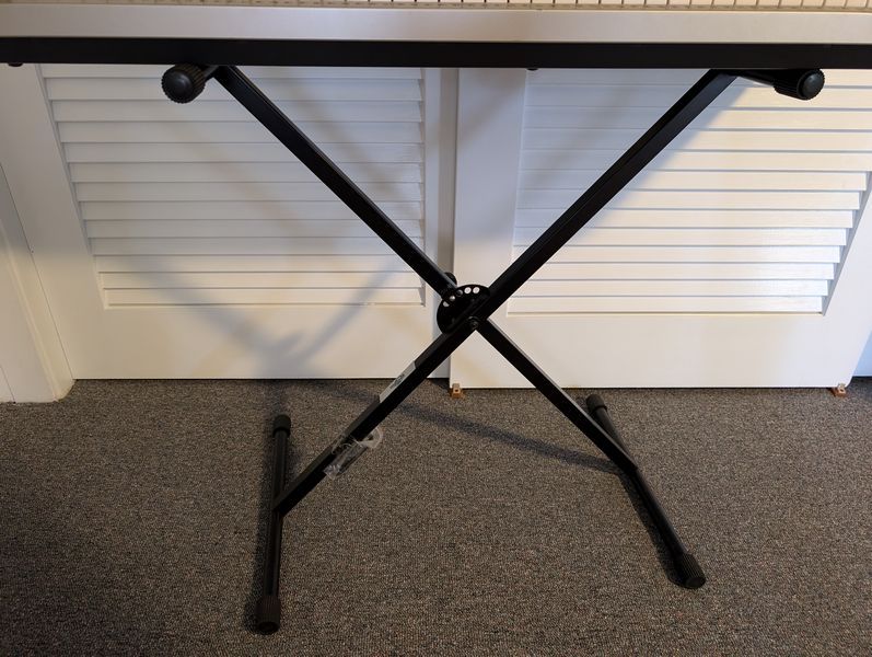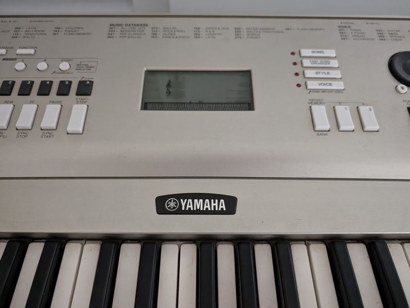 Yamaha Keyboard and Stand. Yamaha YPG-235 grey keyboard (missing power cord) with World Tour folding stand. See photos. Located in the lower level.
