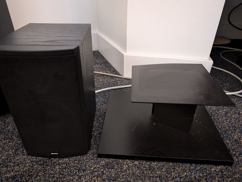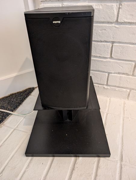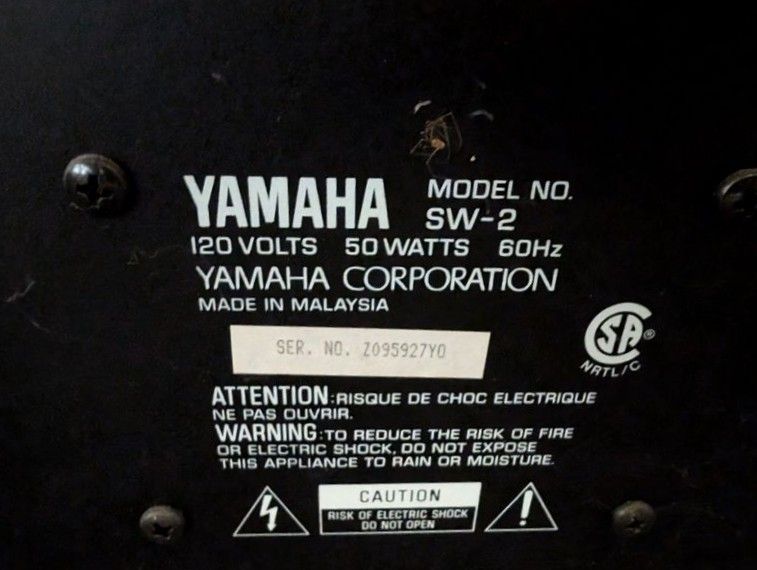Yamaha Subwoofer, Speakers. Yamaha model SW-2 subwoofer; five speakers; two stands. See photos for details. Located in the lower level.