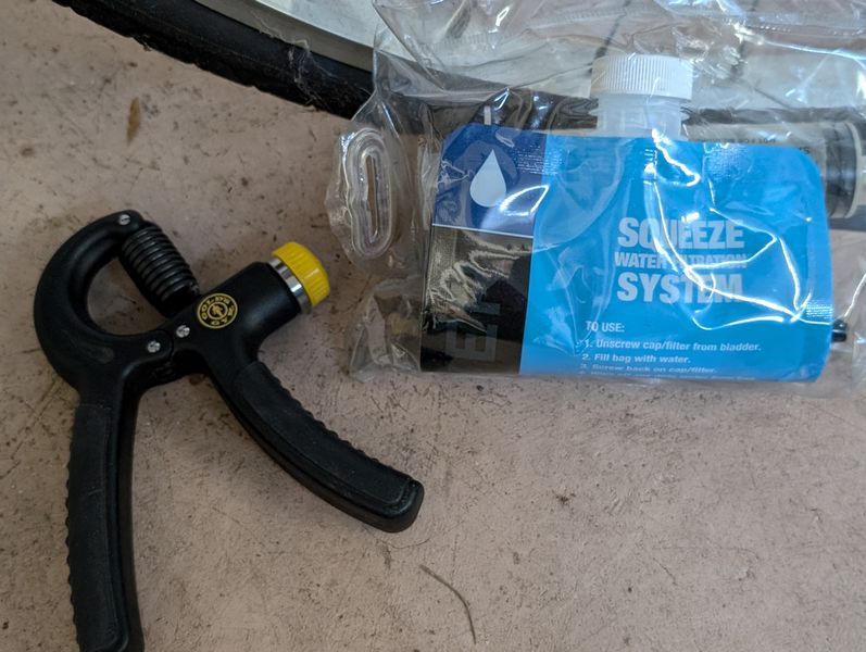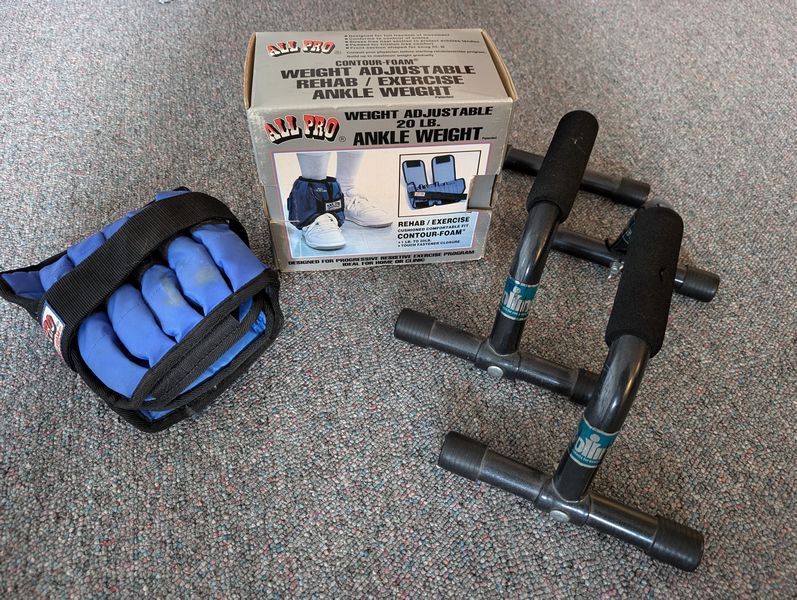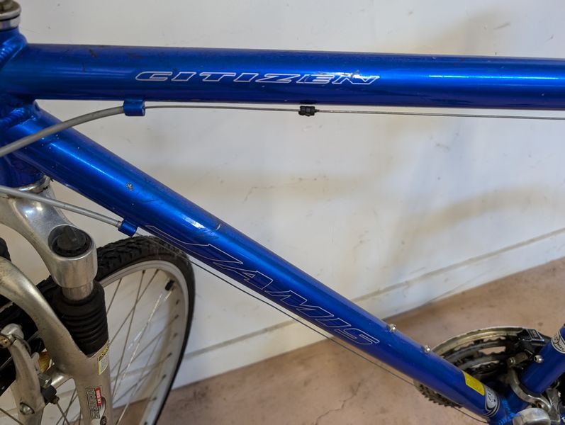 Jamis Citizen Seven-Speed Bike. Blue metallic Jamis Citizen seven speed bike; ankle weights; bike stationary bars; water filtration system (used for hikes); hand grip. Located in the garage & the lower level.