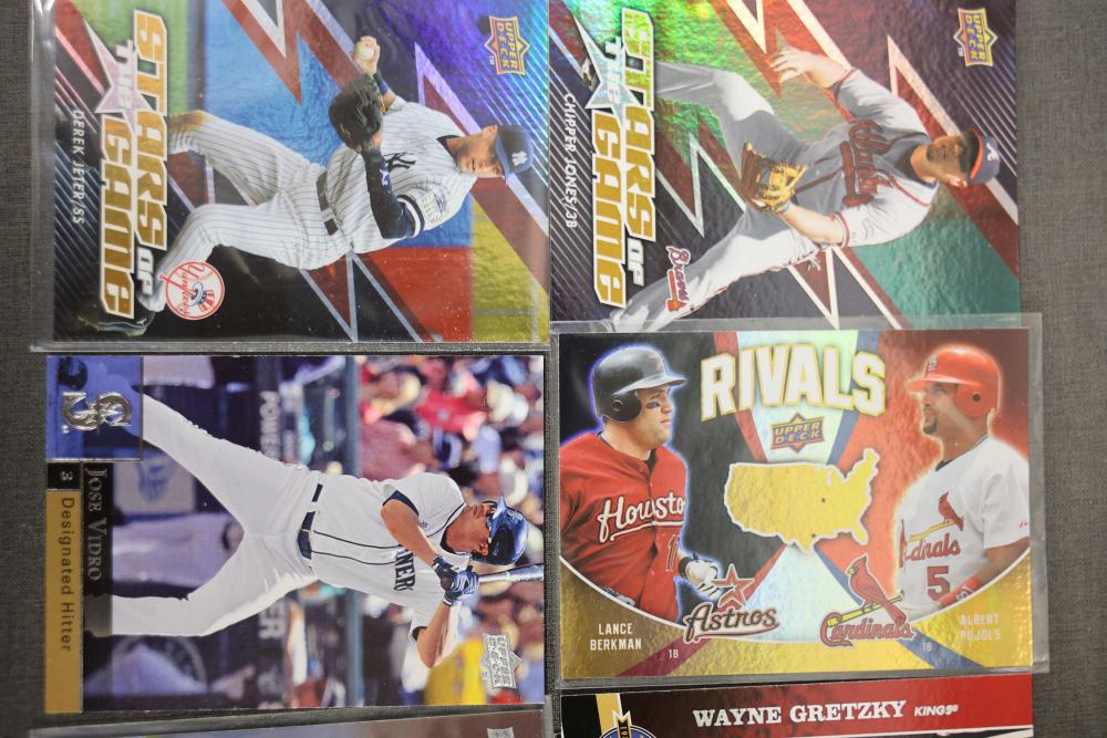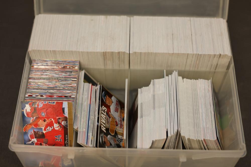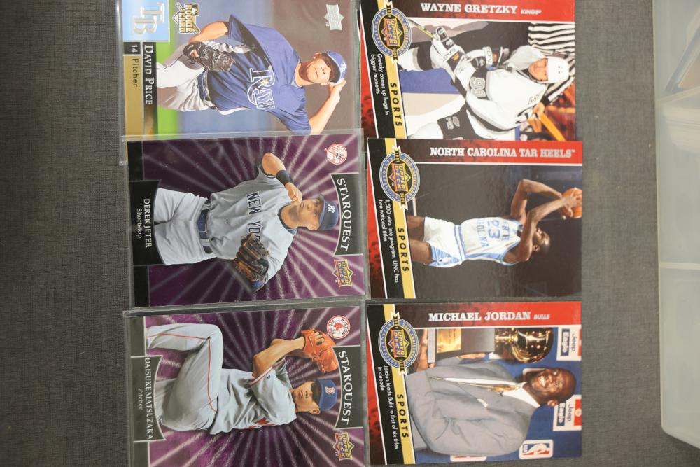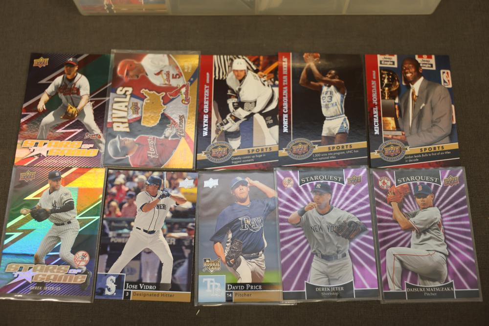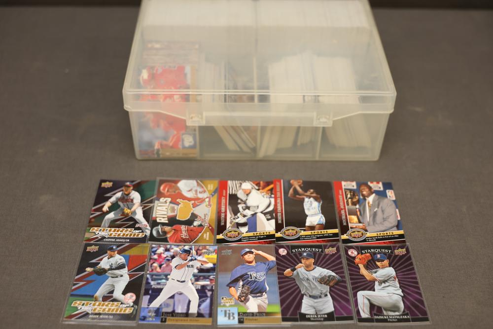 2009 MLB Upper Deck Series 1 and 20th Anniversary Sports Cards. Includes an assortment of baseball and sports cards organized in a plastic storage case. Pickup only.