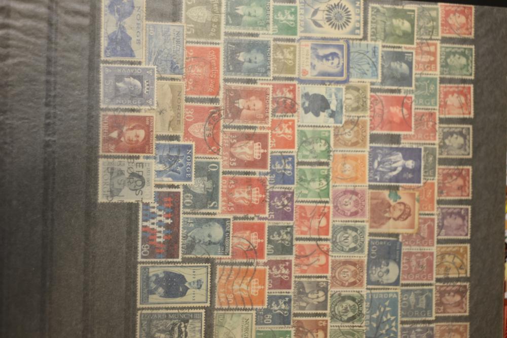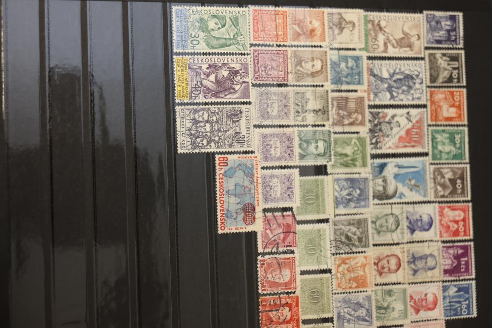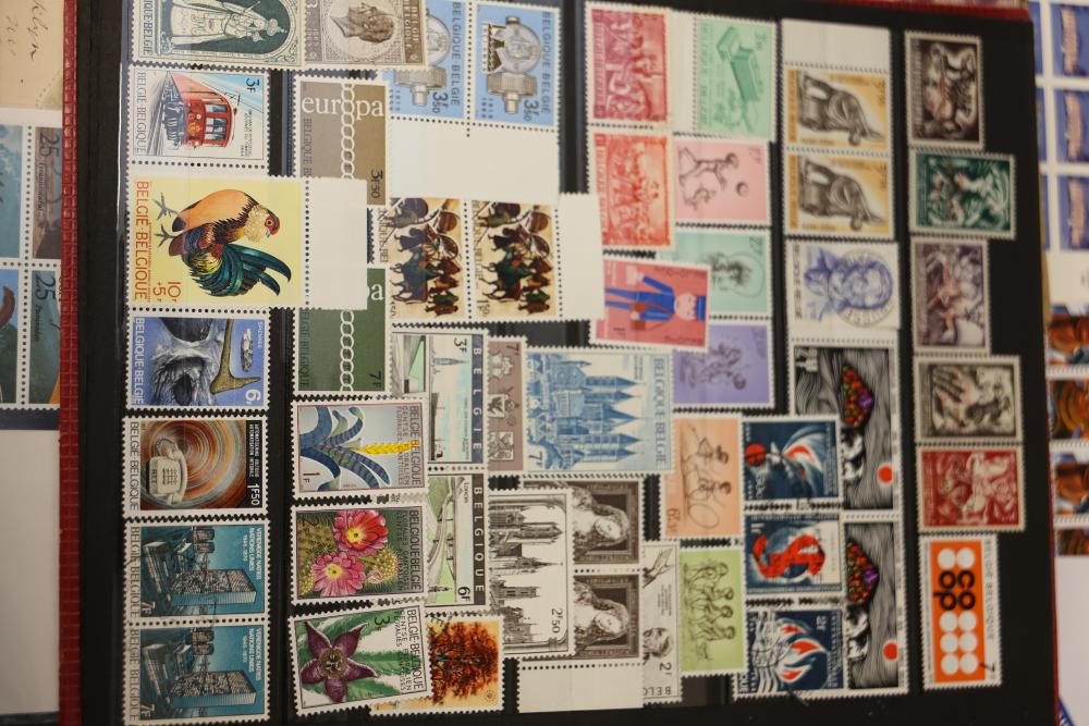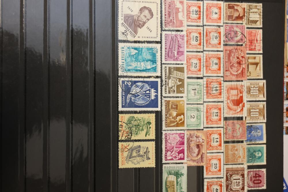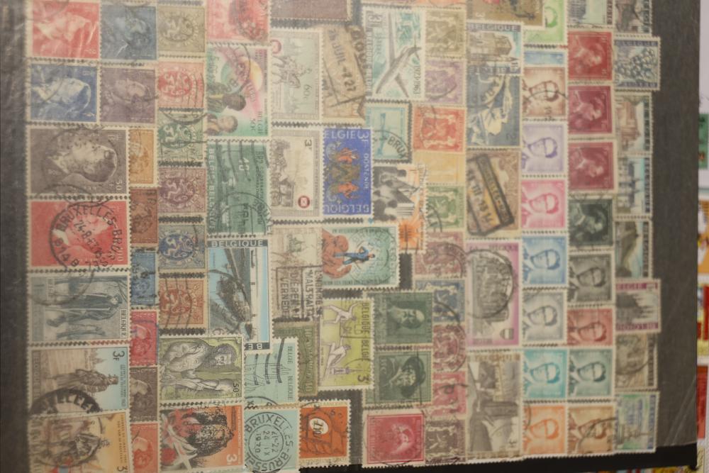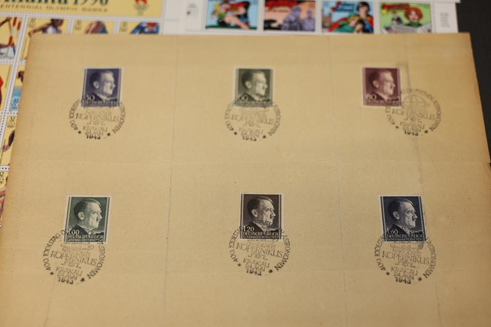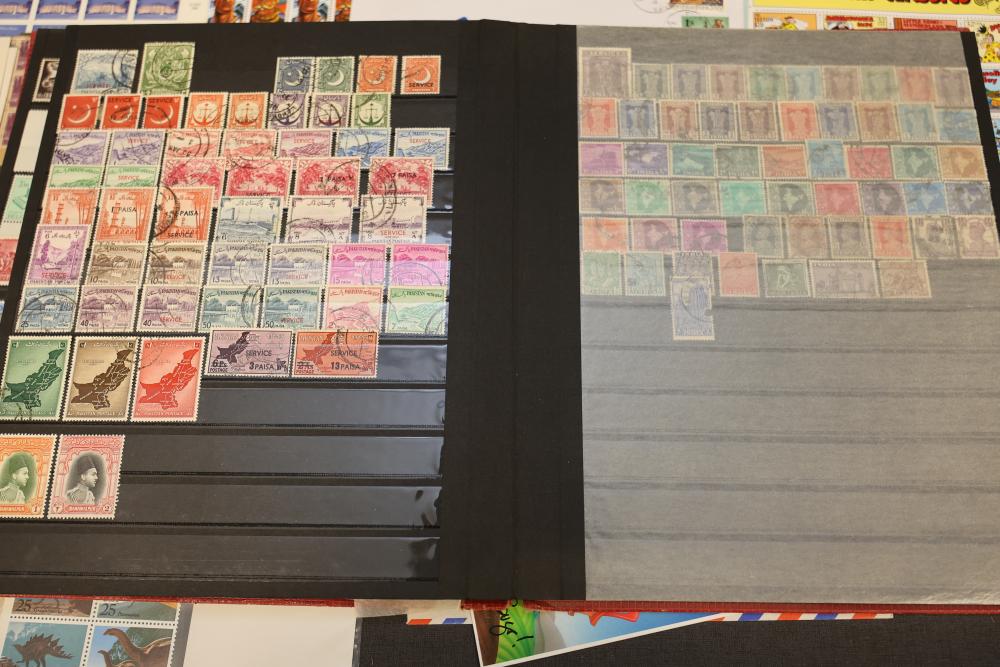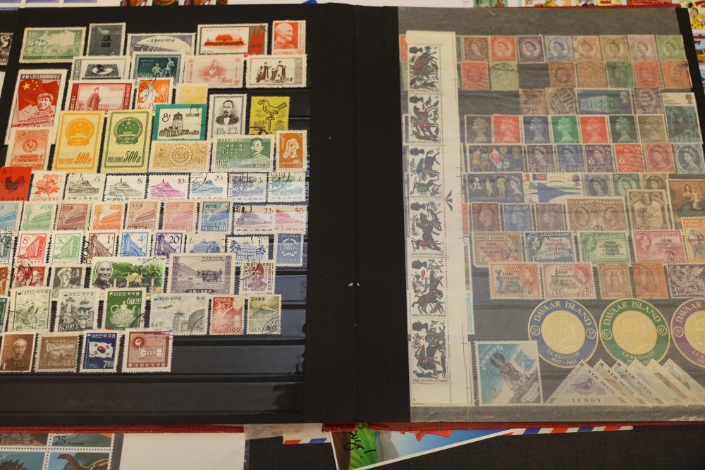Stamps featuring Comic Strip Classics including characters like Blondie and Dick Tracy, Atlanta 1996 Olympic Games with sports scenes, U.S. historical themes, international stamps, and commemorative first-day covers. Collection includes full sheets, partially used stamp books, and envelopes with commemorative postmarks. Pickup only.