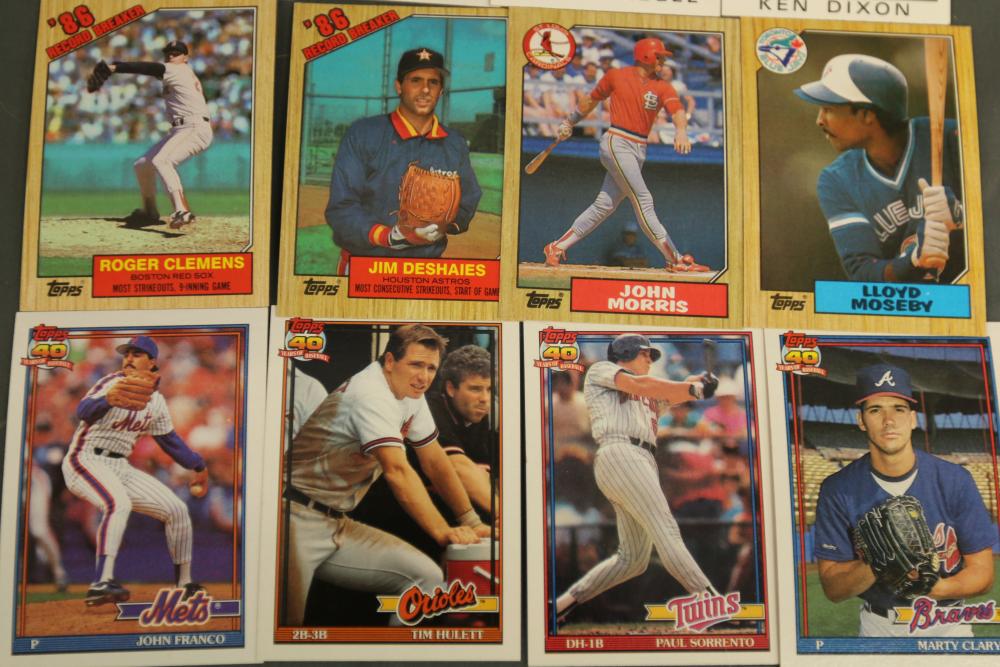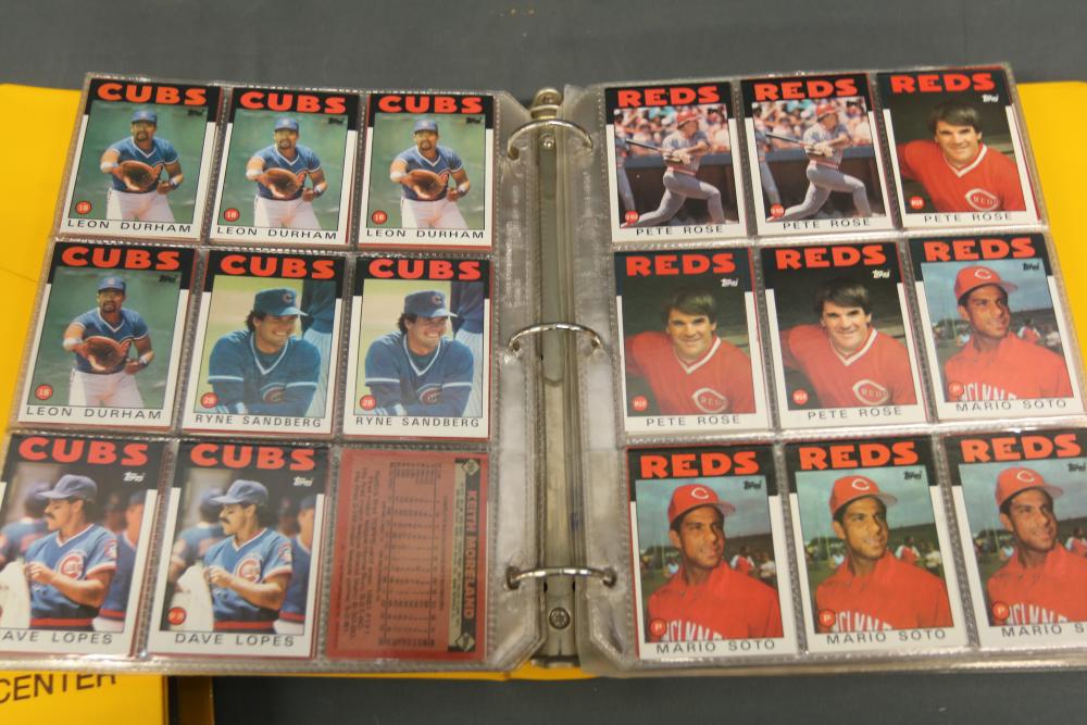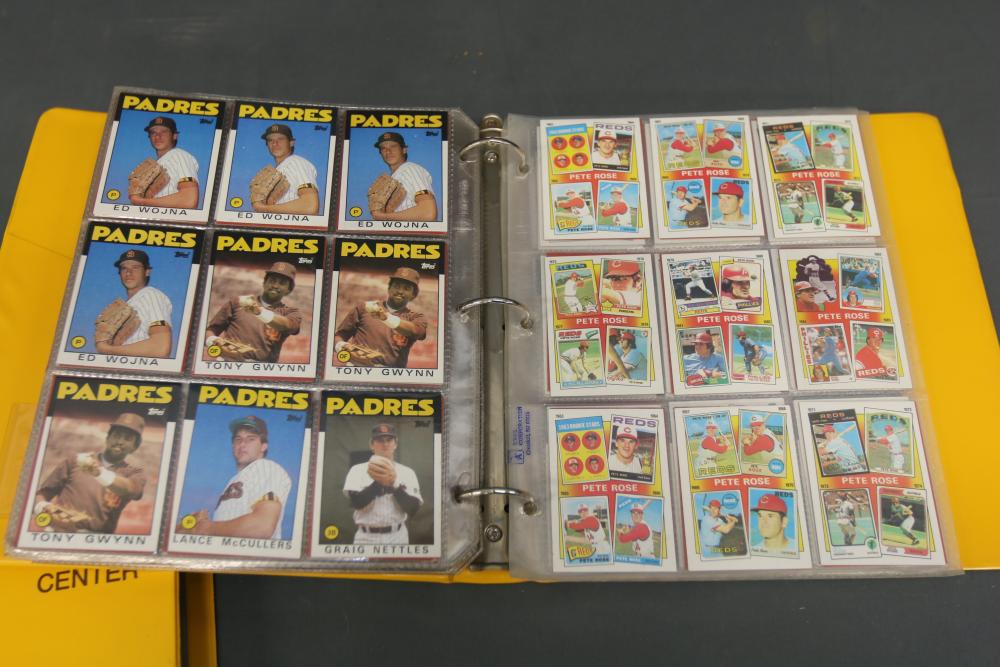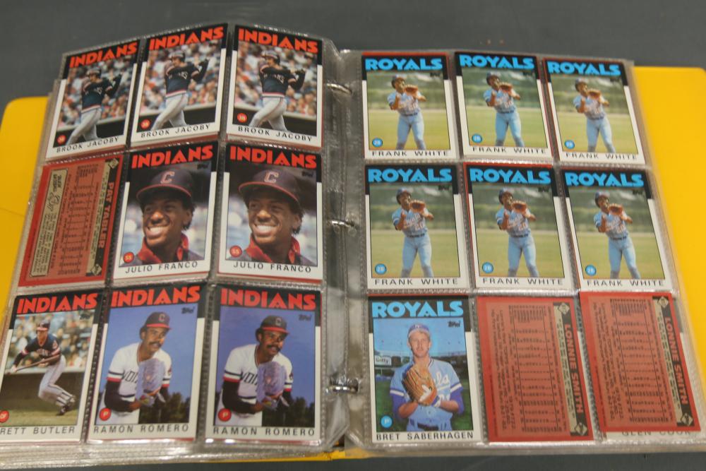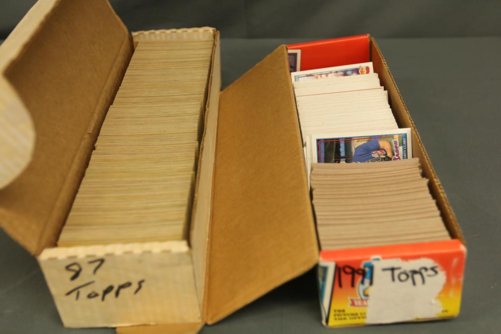 Baseball cards from Topps 1983 series, Topps 1986 series, Topps 1987 series, and Topps 1991 series. Cards are stored in binders and boxes, featuring various teams and players. Includes All-Star cards and key players of those years. Cards appear to be organized by team and series. Pickup only.
