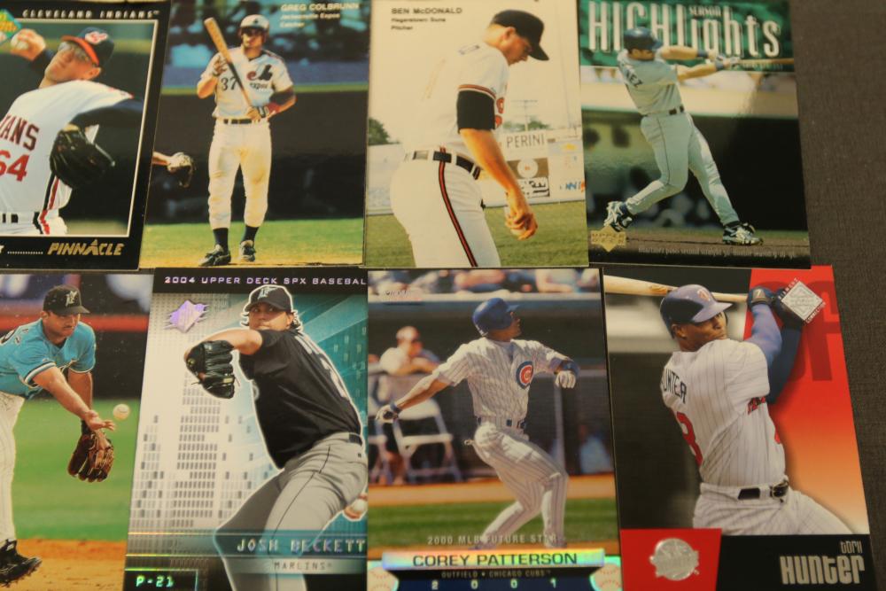 Baseball Cards in Storage Box. Includes a selection of cards showcasing various players and brands. Cards are housed in a storage box designed for easy categorization and organization. Pickup only.