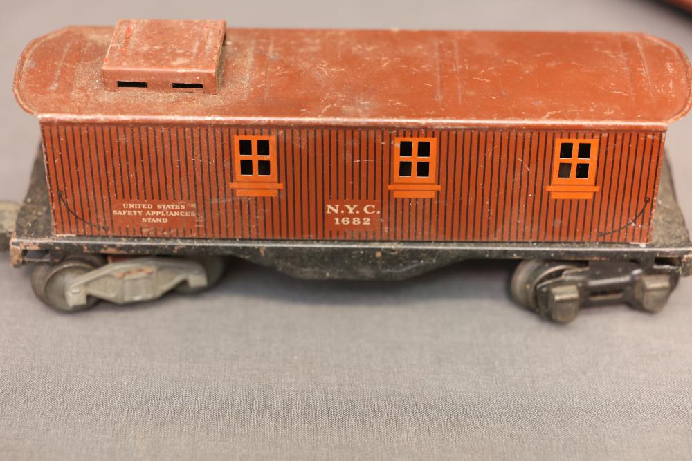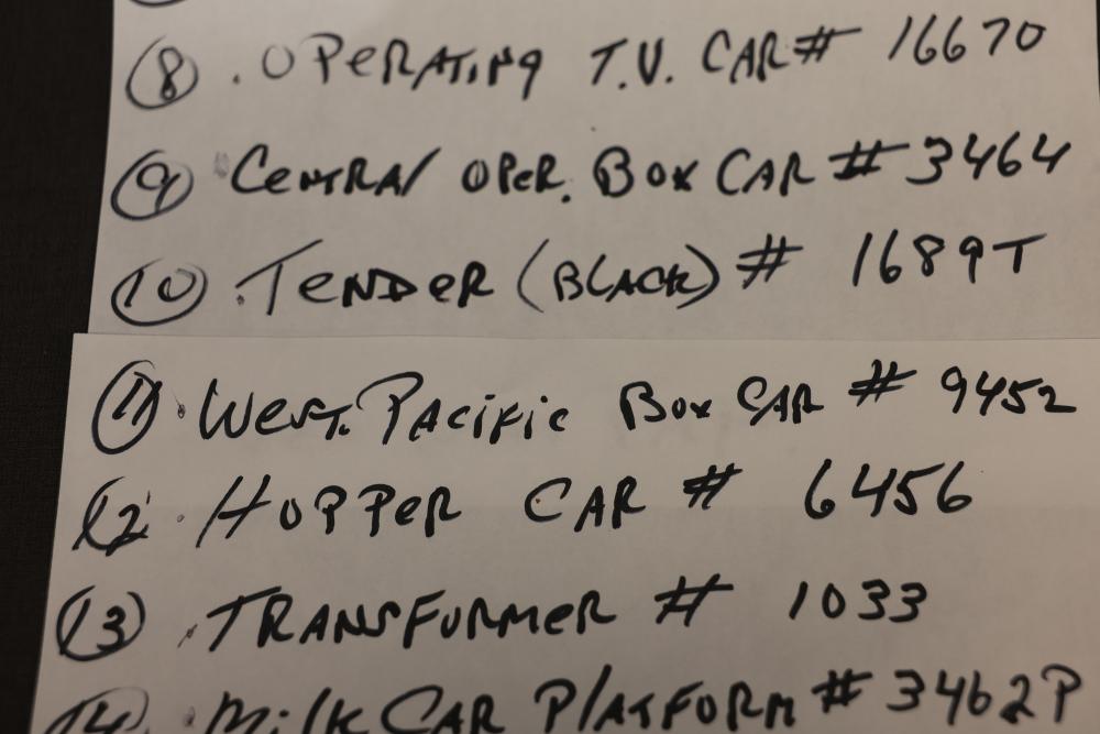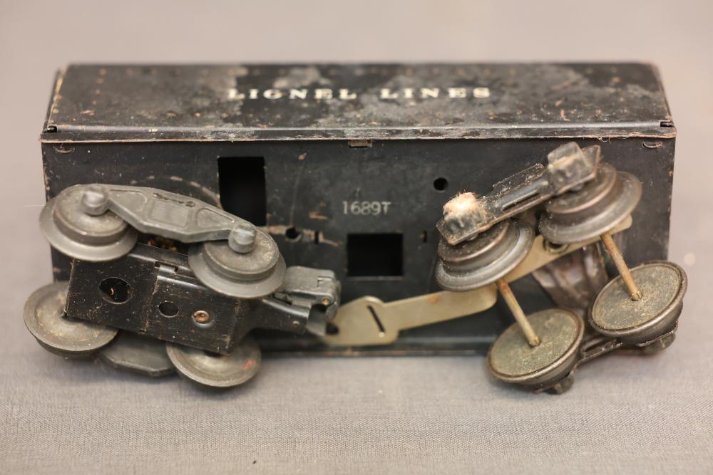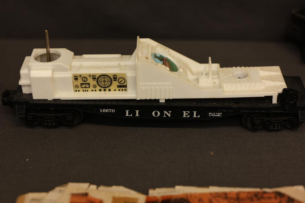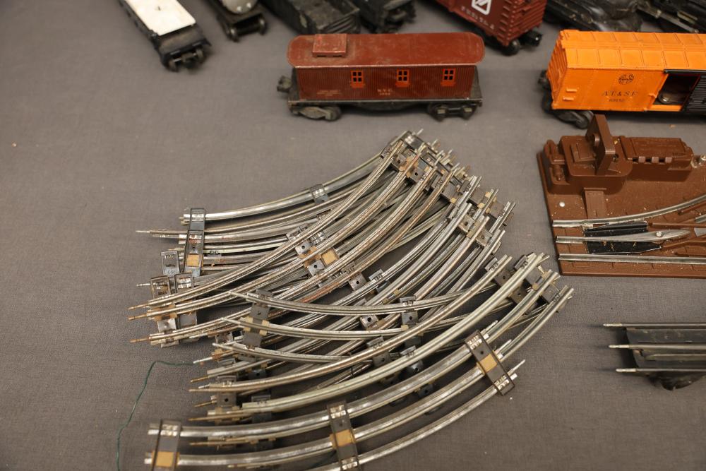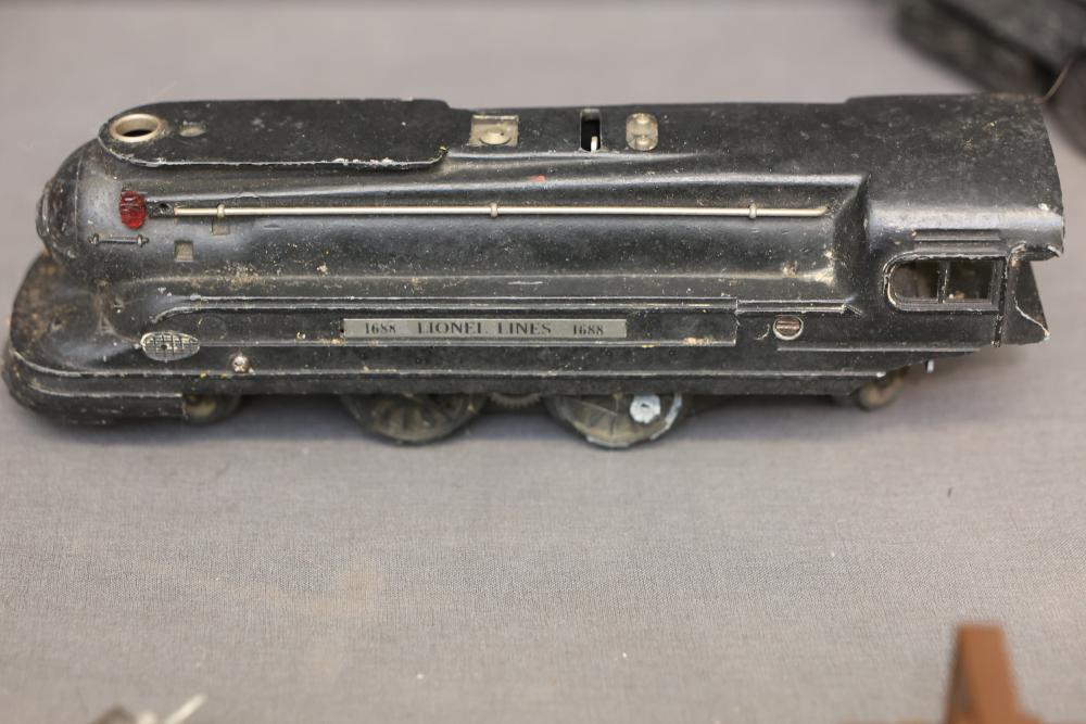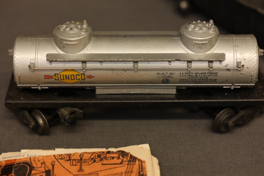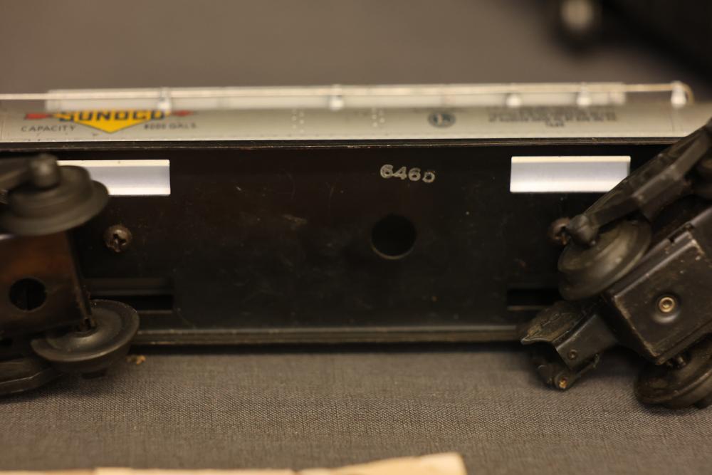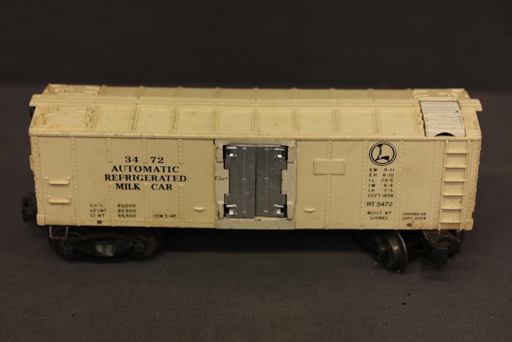 Lionel Train Set with Locomotives, Cars, Transformer, and Accessories. Includes Lionel Locomotive #2331, Lionel Locomotive #2055, Pennsylvania Gondola #6452, Red Caboose #6257, Sunoco Tank Car #6465, Caboose #1682, Operating Milk Car #3472, Operating T.V. Car #16670, Central Operating Box Car #3464, Black Tender #1689T, Western Pacific Box Car #9452, Hopper Car #6456, Transformer #1033, Milk Car with Platform #3472, Gondola Car #6462, Turnout Switch #5121, Remote Control Track #6019, and Whistle/Blower Box Car #2046W. Includes additional tracks, accessories, and documents. Pickup only.