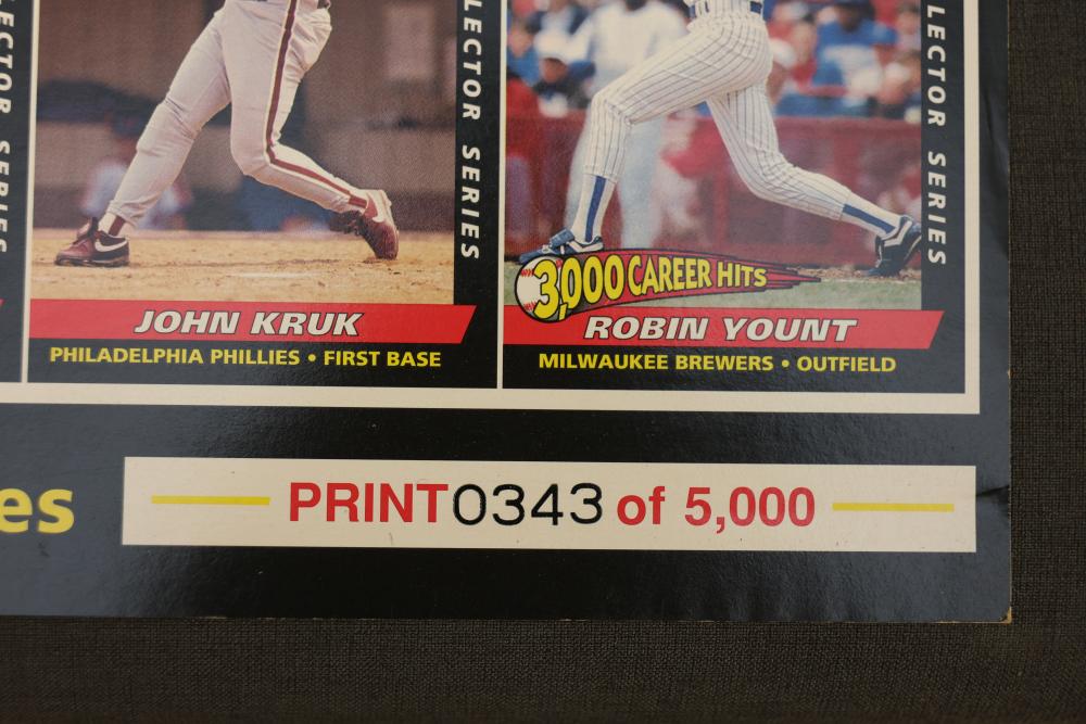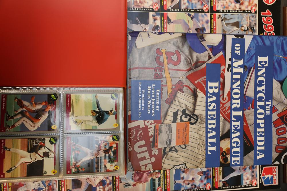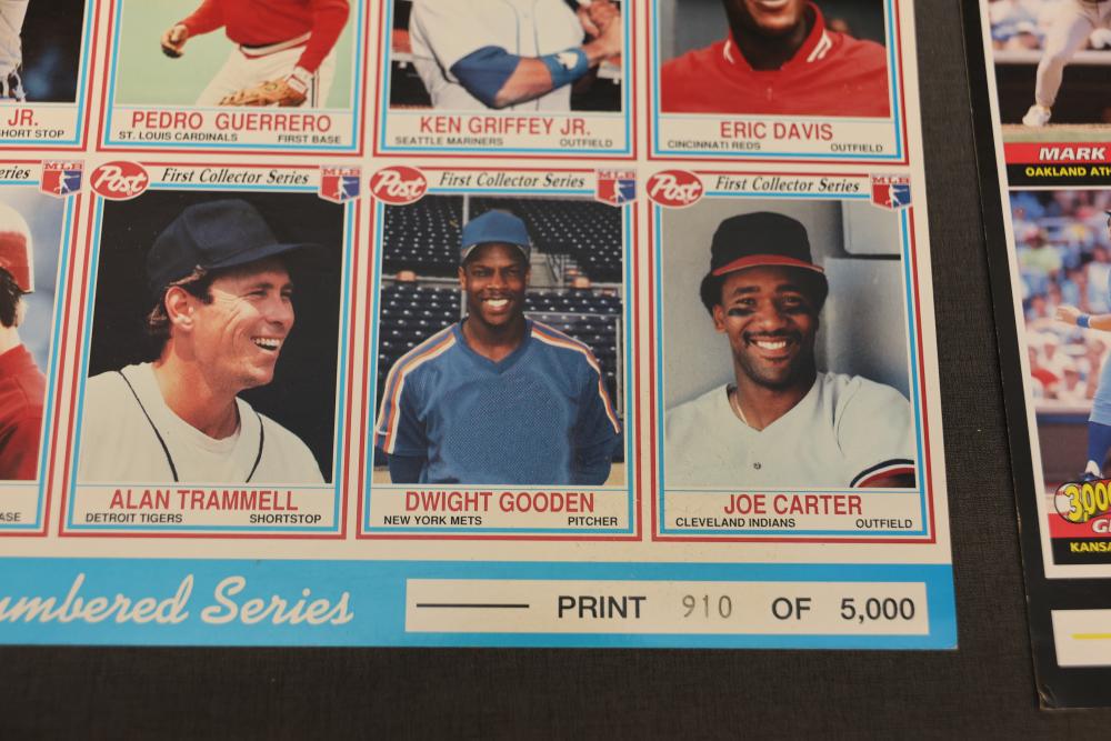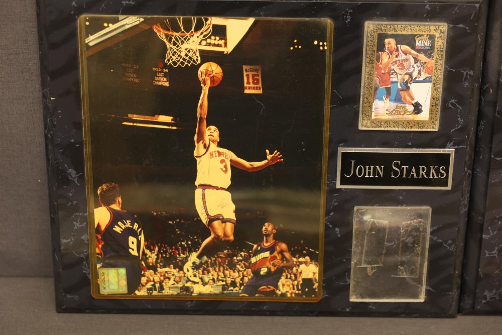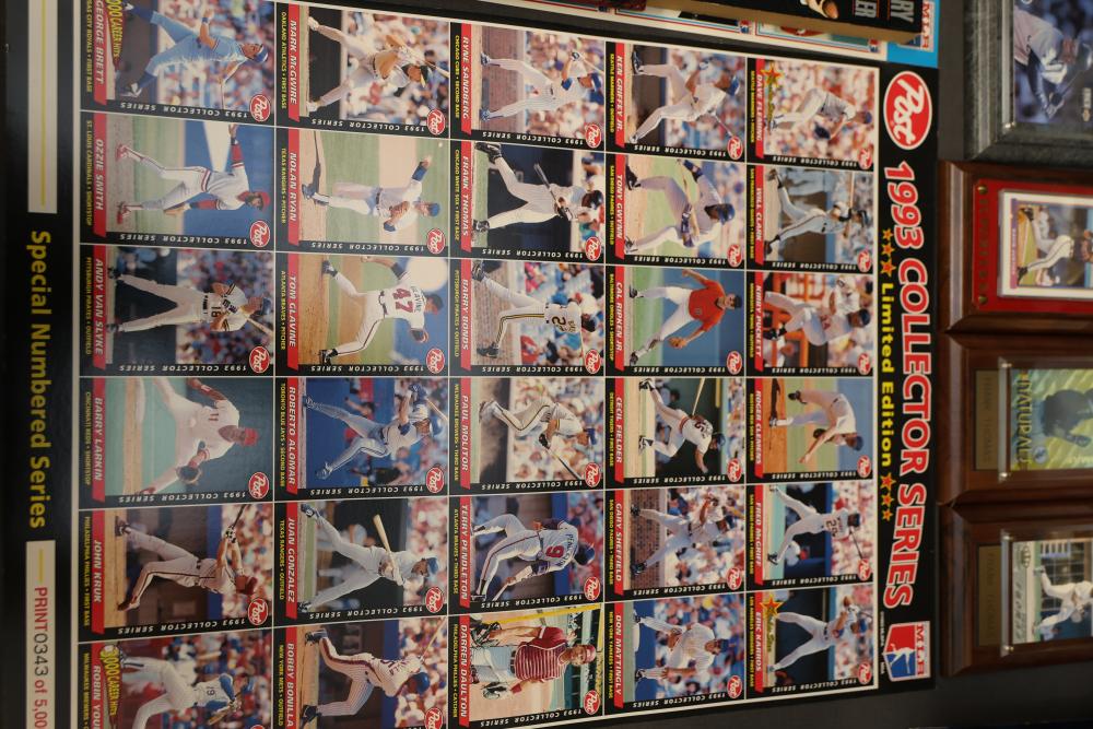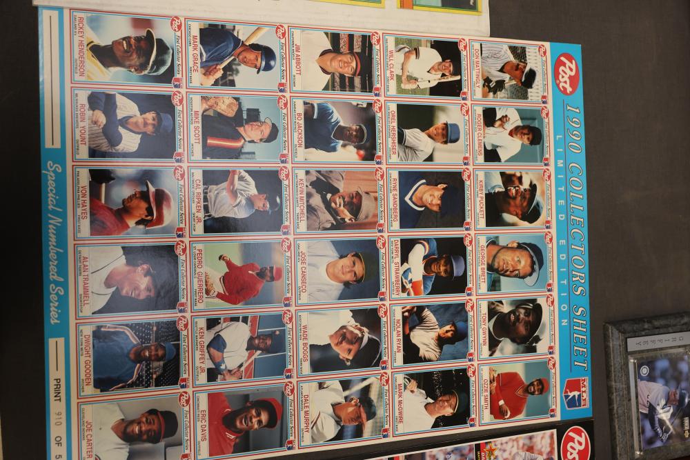 Sports Memorabilia Featuring Plaques, Figures, and Cards. Includes commemorative plaques of baseball players such as Andy Pettitte and Bernie Williams, bobblehead figures, action figures, collector cards, and magazines. Highlights cover various players and events. Pickup only.