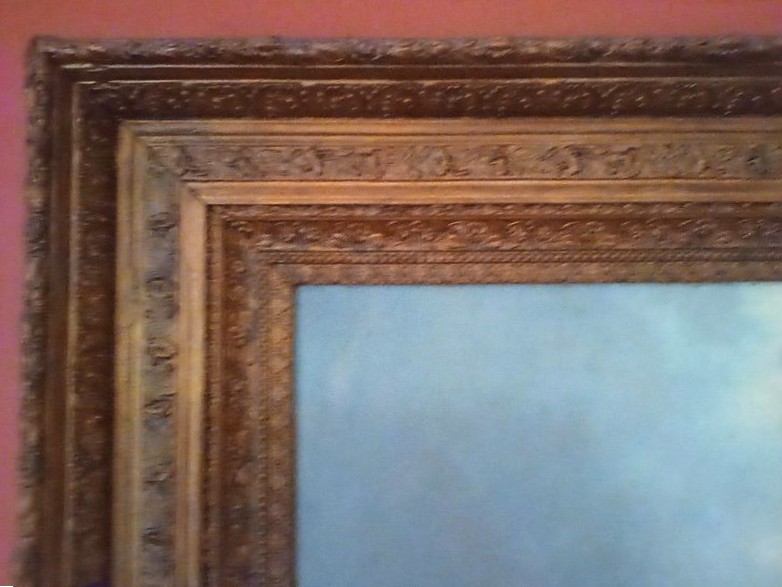 Signed Antique Painting in Gilt Frame. Sign Carolus painting (believed to be Hudson River Valley), 63"Wx42"W in a 6"W ornate gilt frame. See photos for details. Too largea to remove from wall to check for provenance. Family member was gifted the item.