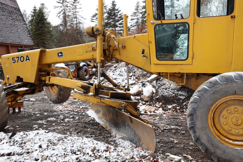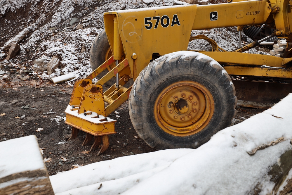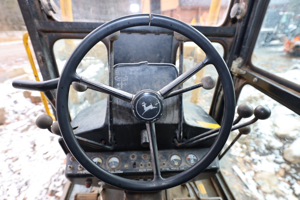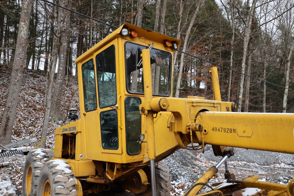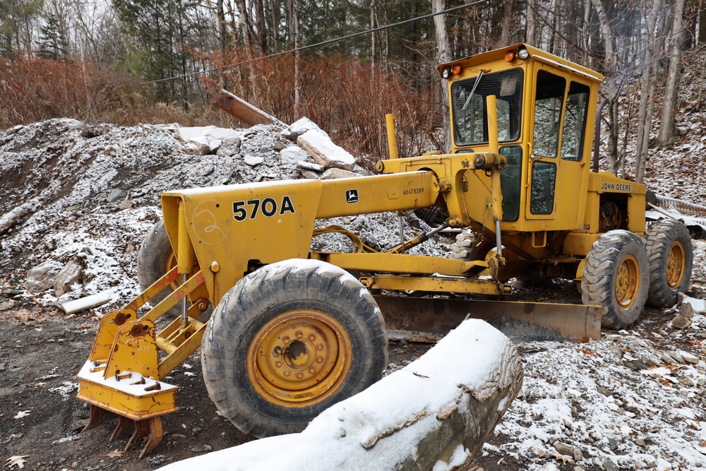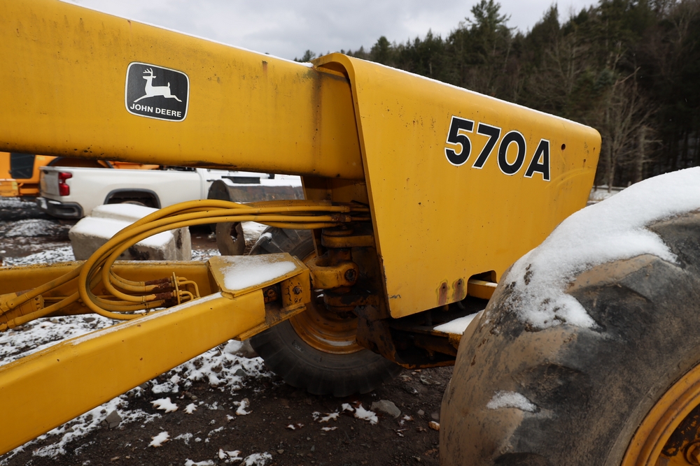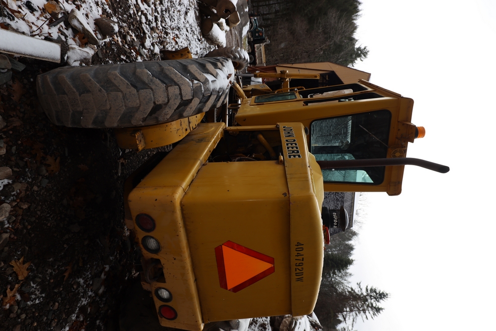 1982 John Deere 570A Grader. SN: 404792DW. Hours reading: 2763.1. Seller notes: Runs, operates, 2 side windows broke out.
