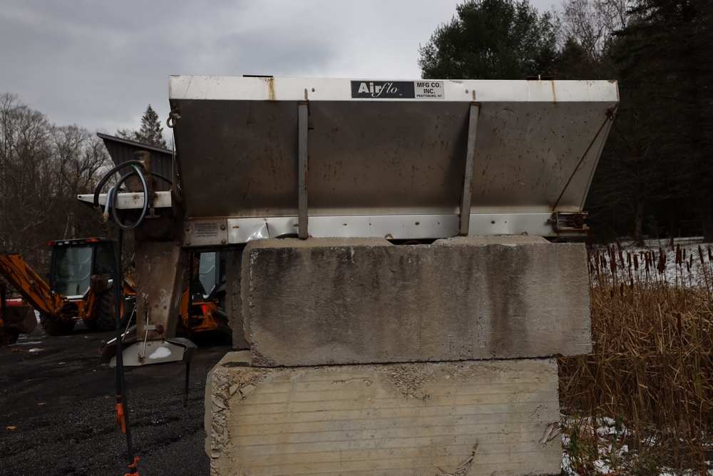 Items include 2021 Case 580SN Backhoe Loader, 1982 John Deere 570A Grader, 2003 Case 580M Series 2 Backhoe Loader, 2003 International WorkStar 7500, 1978 John Deere 570A Grader, Tenco plow, and salt spreaders. Items are located in Arkville, NY.