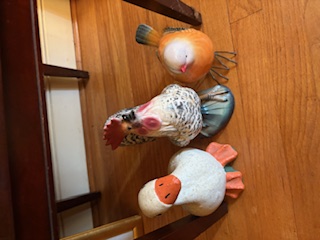 Wall Shelf, art, Décor. Bird-themed décor incl: collector's plates; statues; decoys; bookends; wood open wall shelf; wall art, approx. 1'Wx30"H; small wood table.