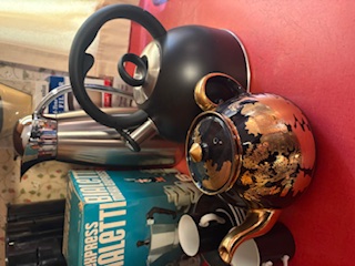 Coffee, Tea Pots and Accessories. Multiple coffee makers & pots (many in boxes); mugs; tea kettle; carafe; more. See photos for details.