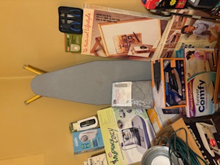 Household Functional. Incl: lamp table; ironing board; mag rack; clothes drying rack; table lamps; Oreck canister vac; floor mirror; more. See photos.
