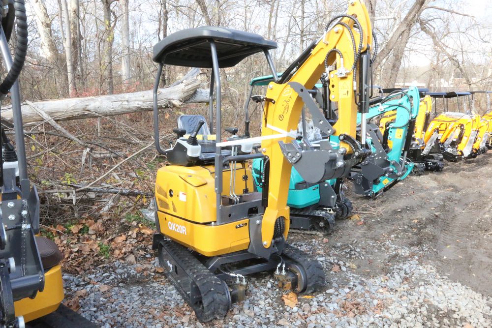 New 2025 CFG Industrial gas powered mini Excavator model QK20R with bucket, dozer blade, haydraulic thumb, aux hydraulics, RATO 23HP, and canopy cover. Hours reading less than 1 hour.