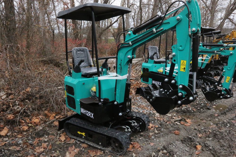 New 2025 CFG Industrial MH12RX mini excavator with bucket, thumb, gas engine. Hours reading less than 1 hour.