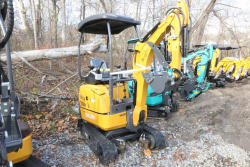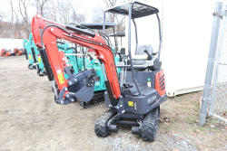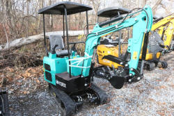 New 2025 CFG Industrial mini Excavator, Kubota 15HP Diesel engine with EPA, model NT18K, with thumb, canopy cover, dozer blade, hand and foot controls. Hours reading less than 1 hour.
