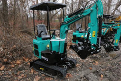 New 2025 CFG Industrial gas powered mini Excavator model H12R with 420cc gasoline engine with EPA, bucket, 4' long tracks, 36.5" wide base, 6" wide tracks, canopy, hydraulic boom & bucket controls, dozer blade. Hours reading less than 1 hour.