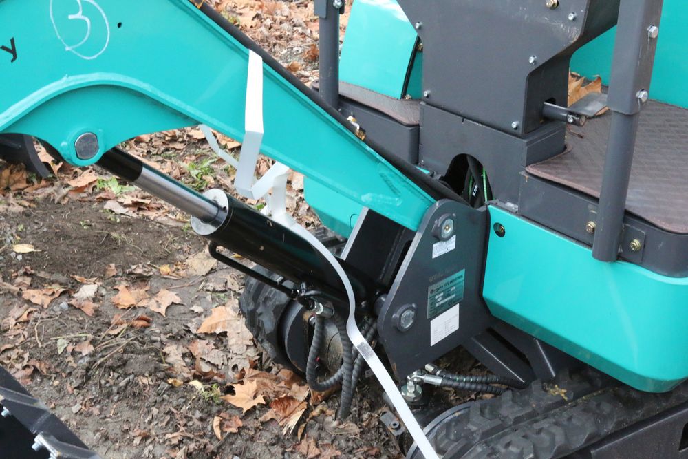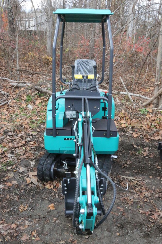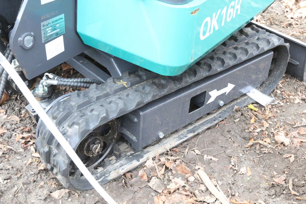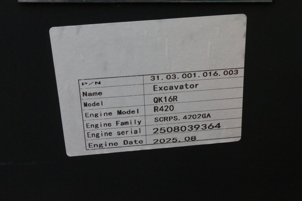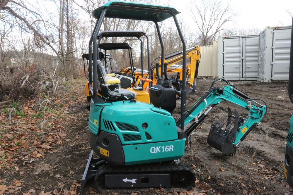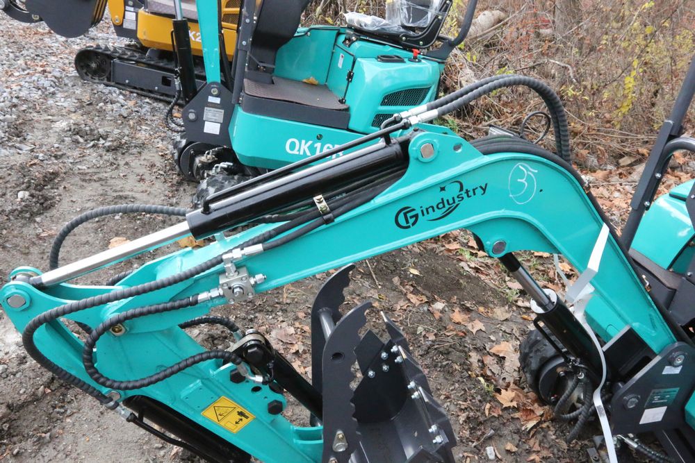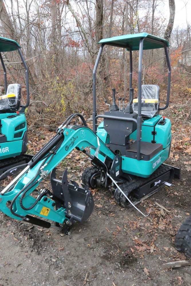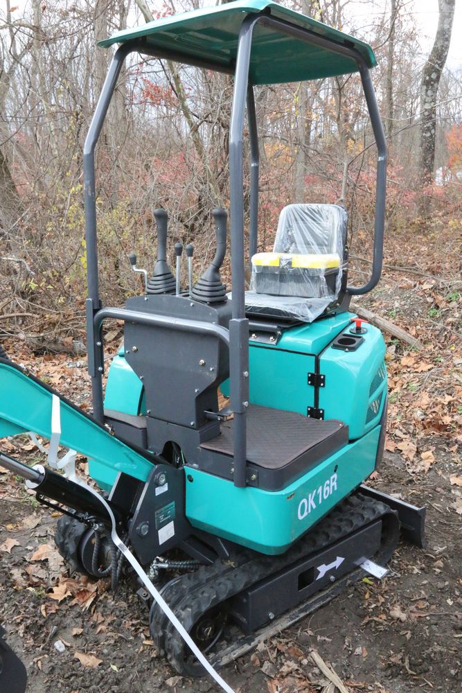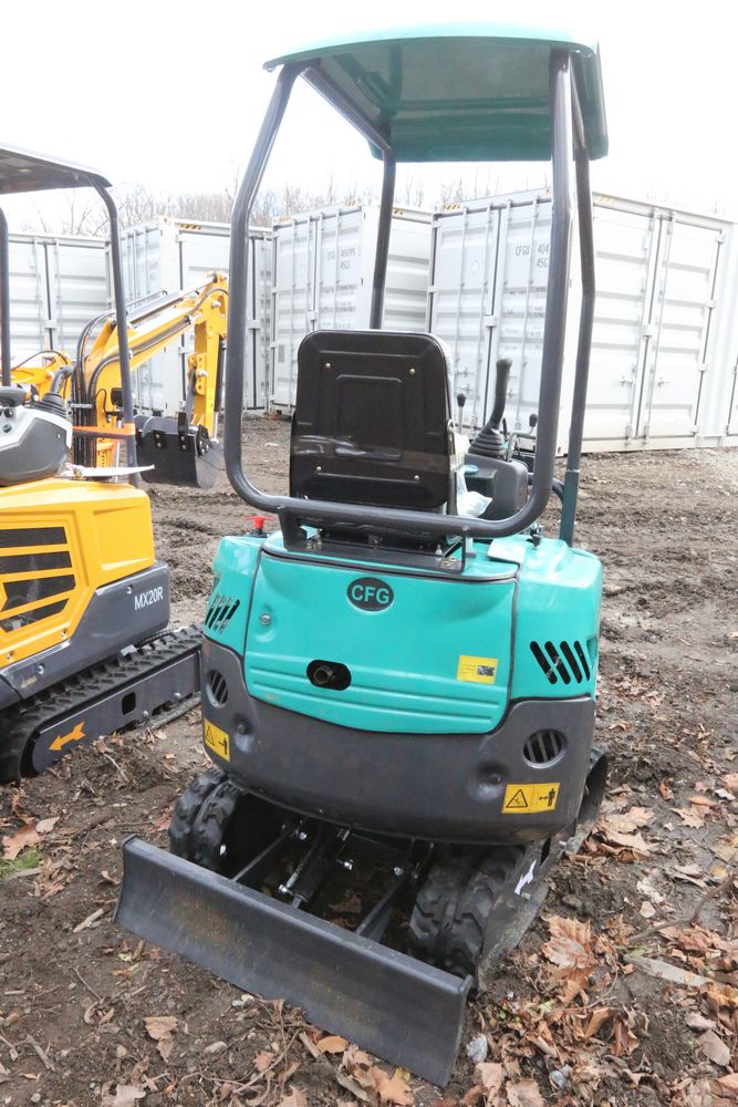 New 2025 CFG Industrial gas powered mini Excavator model QK16R with bucket, dozer blade, aux hydraulics, engine model R420, 920KG load, with canopy cover. Hours reading less than 1 hour.