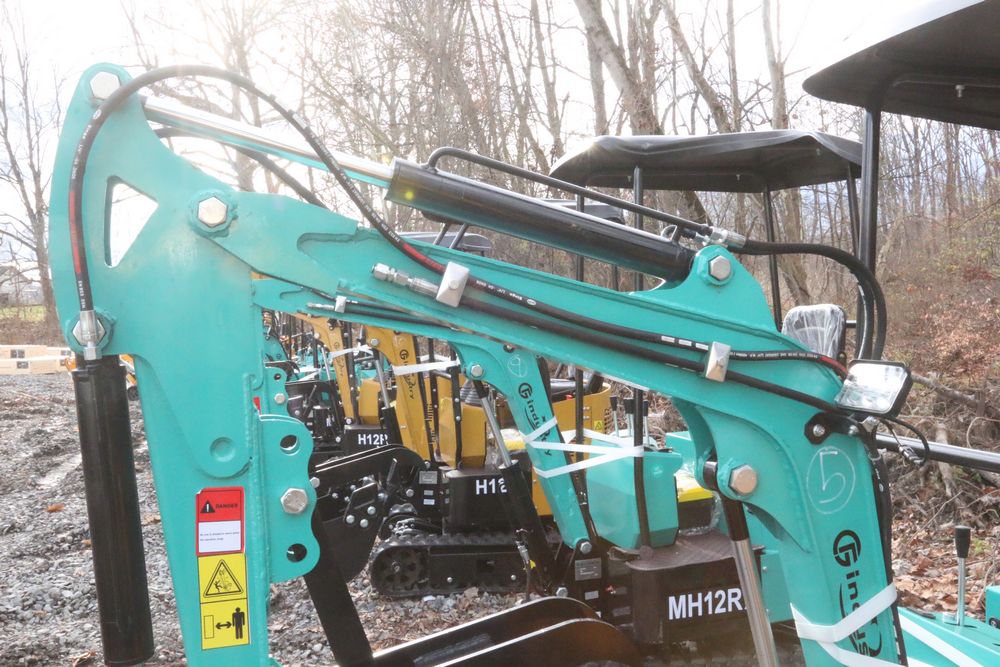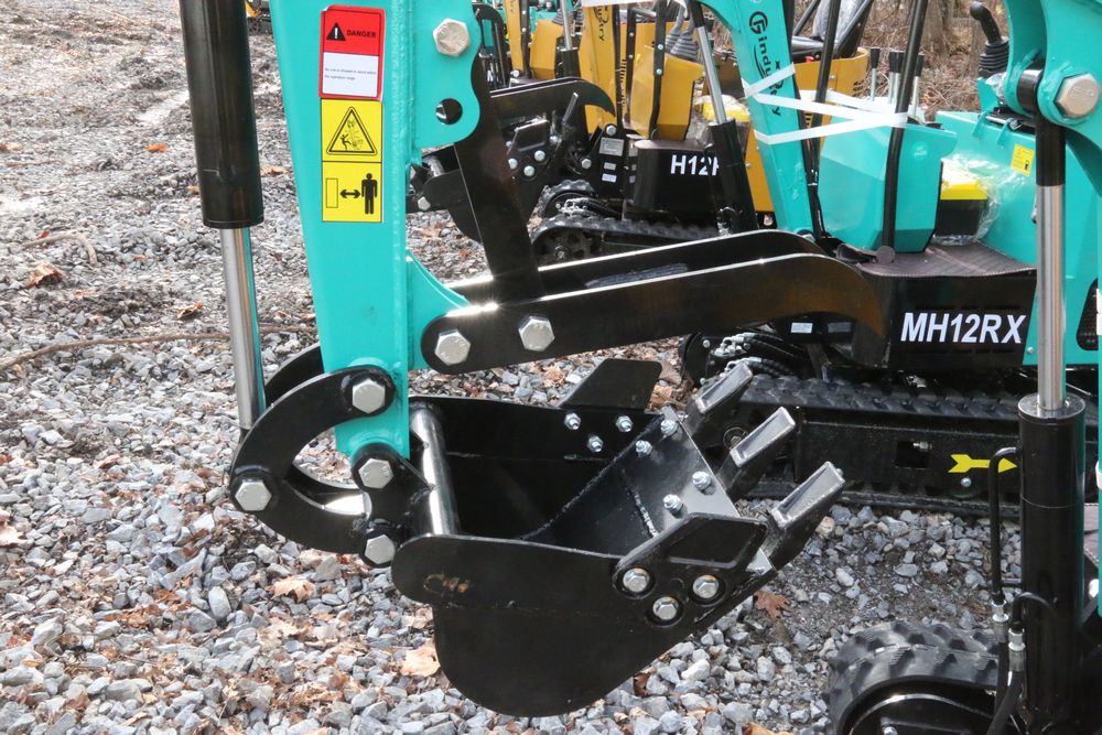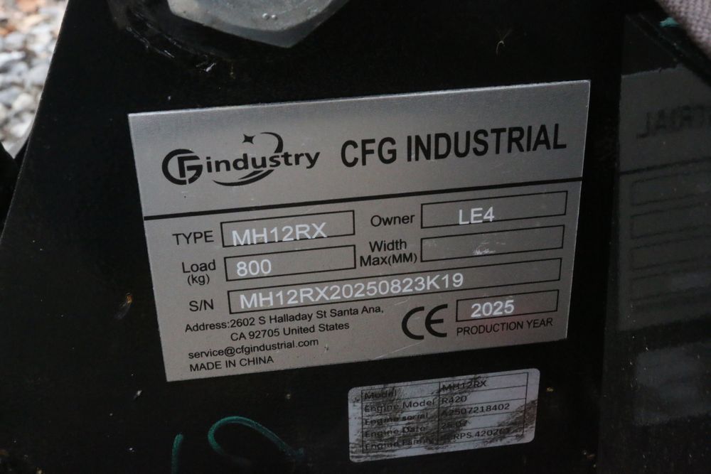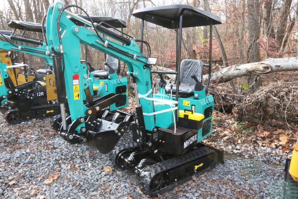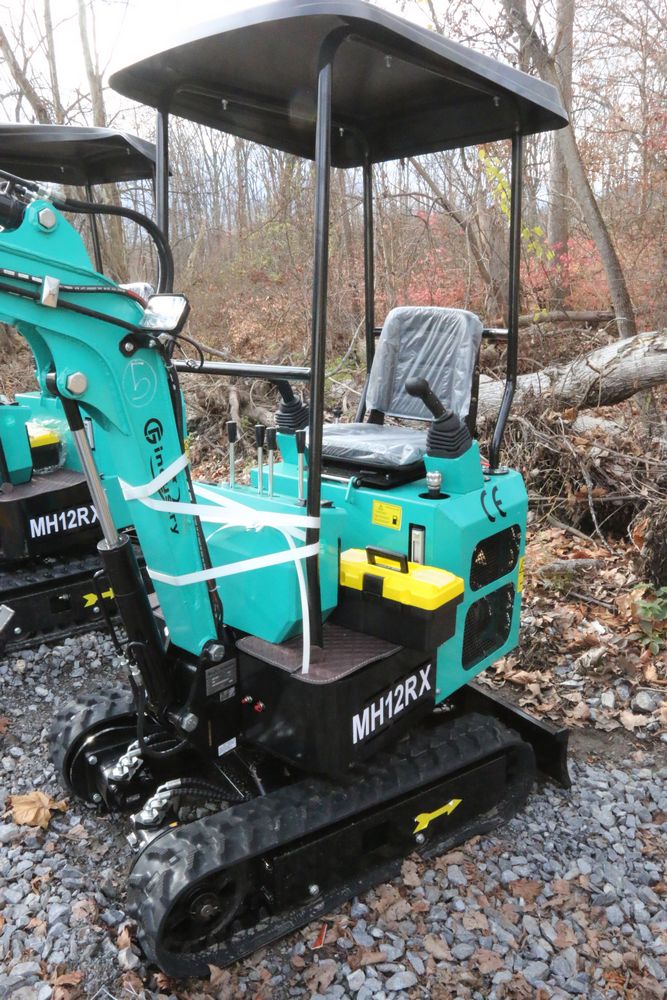 New 2025 CFG Industrial MH12RX mini excavator with bucket, thumb, gas engine. Hours reading less than 1 hour.