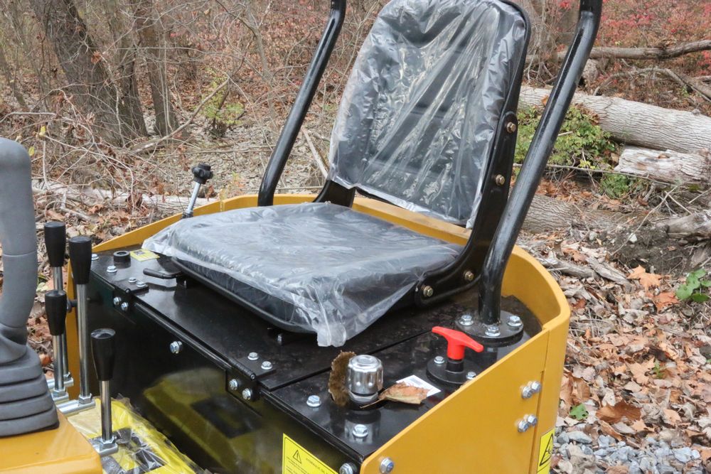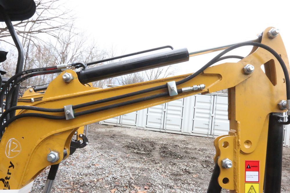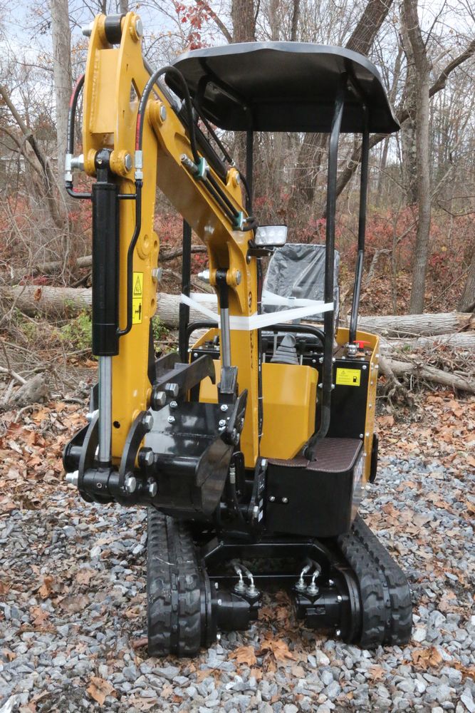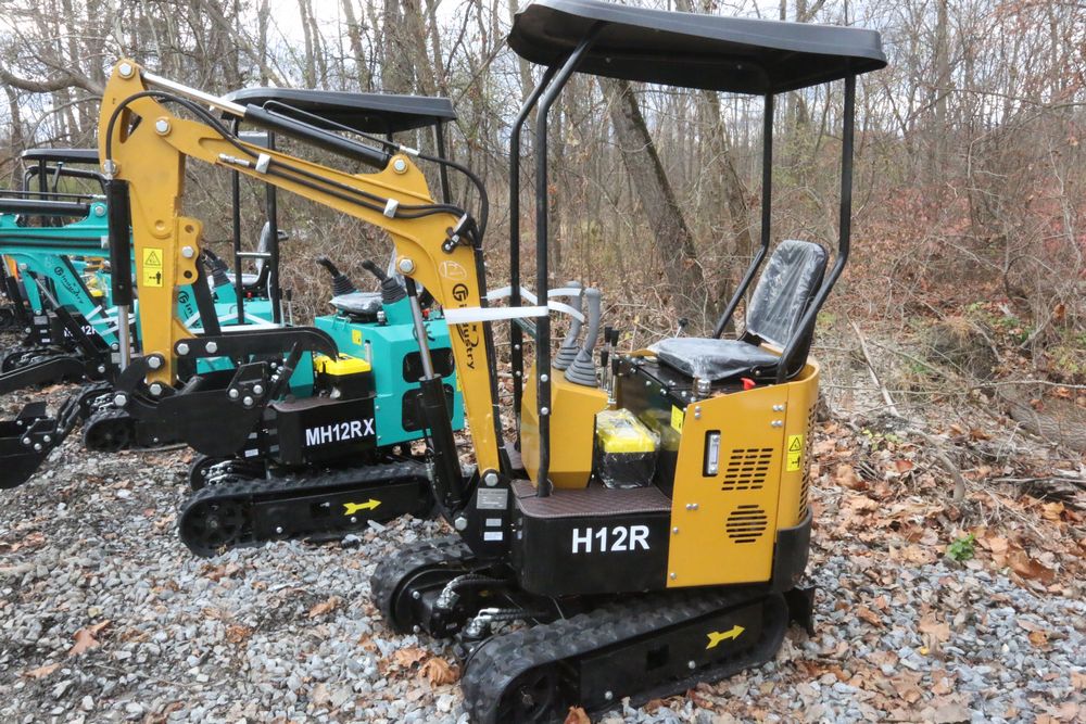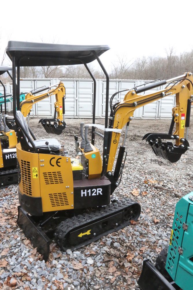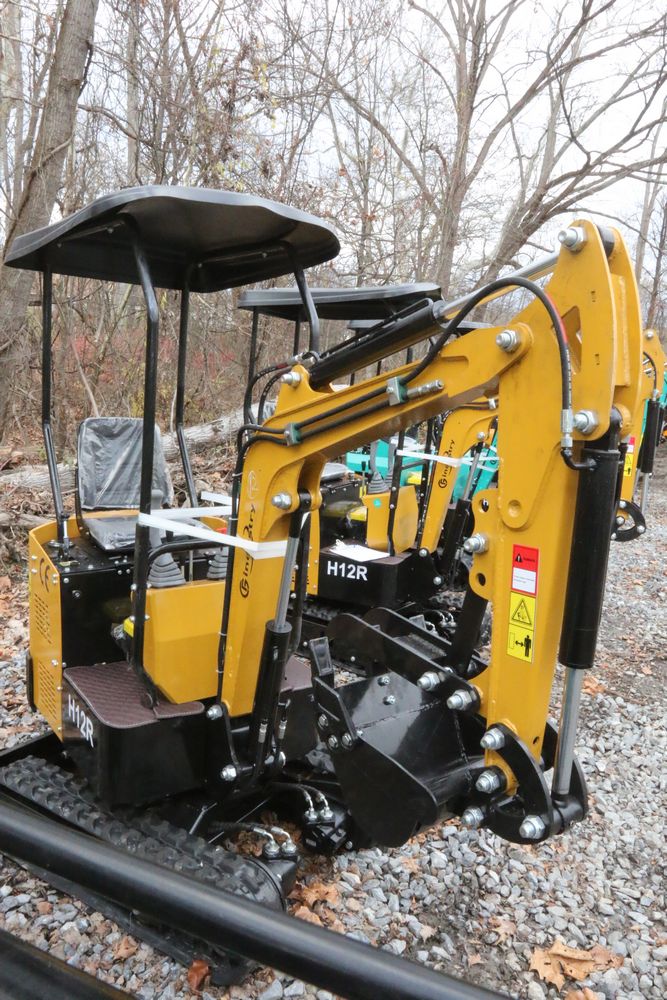 New 2025 CFG Industrial gas powered mini Excavator model H12R with 420cc gasoline engine with EPA, bucket, 4' long tracks, 36.5" wide base, 6" wide tracks, canopy, hydraulic boom & bucket controls, dozer blade. Hours reading less than 1 hour.