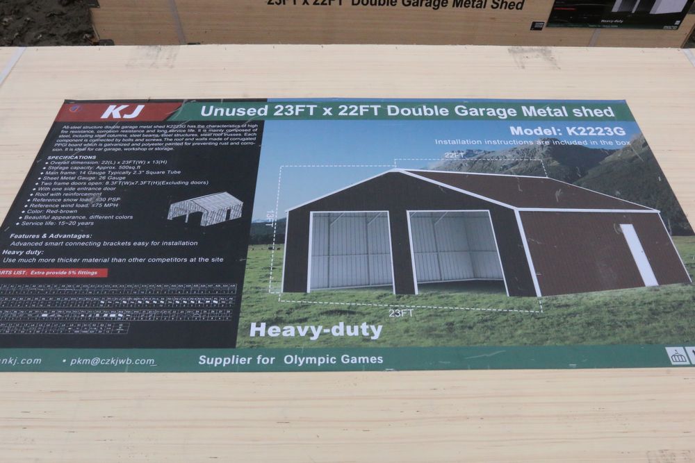 Items include new 2025 CFG Industrial mini excavators, gas powered mini excavators; new 2025 KJ 20' bi-parting iron gates, double garage metal shed, all-steel carport, livestock metal shed, hot-dip galvanized field fence, portable restroom; new MIVA mini excavator attachments: auger, rake, ripper, hedge cutter, hydraulic thumb; tilting excavator bucket; rubber track; new 2025 GIYI skid steer fork attachment; new 2025 SKLP fork extension; new 2025 MIG welder; new Husky black tool locker; new 2025 CFG Industrial mini skid steer backhoe & more. Items are located in Pleasant Valley, NY. Preview is highly recommended.