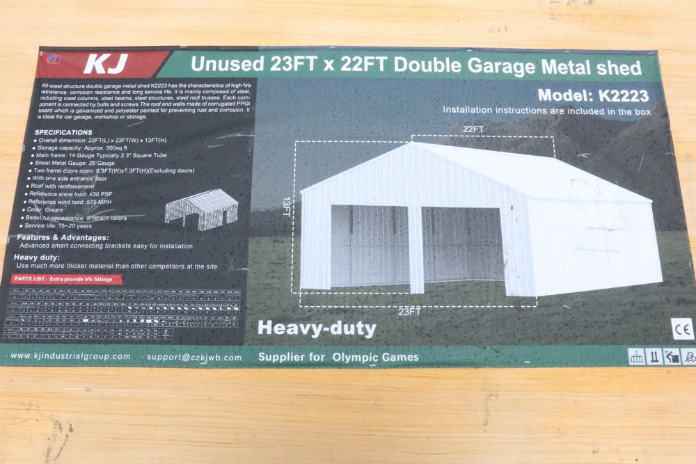 Items include new 2025 CFG Industrial mini excavators, gas powered mini excavators; new 2025 KJ 20' bi-parting iron gates, double garage metal shed, all-steel carport, livestock metal shed, hot-dip galvanized field fence, portable restroom; new MIVA mini excavator attachments: auger, rake, ripper, hedge cutter, hydraulic thumb; tilting excavator bucket; rubber track; new 2025 GIYI skid steer fork attachment; new 2025 SKLP fork extension; new 2025 MIG welder; new Husky black tool locker; new 2025 CFG Industrial mini skid steer backhoe & more. Items are located in Pleasant Valley, NY. Preview is highly recommended.