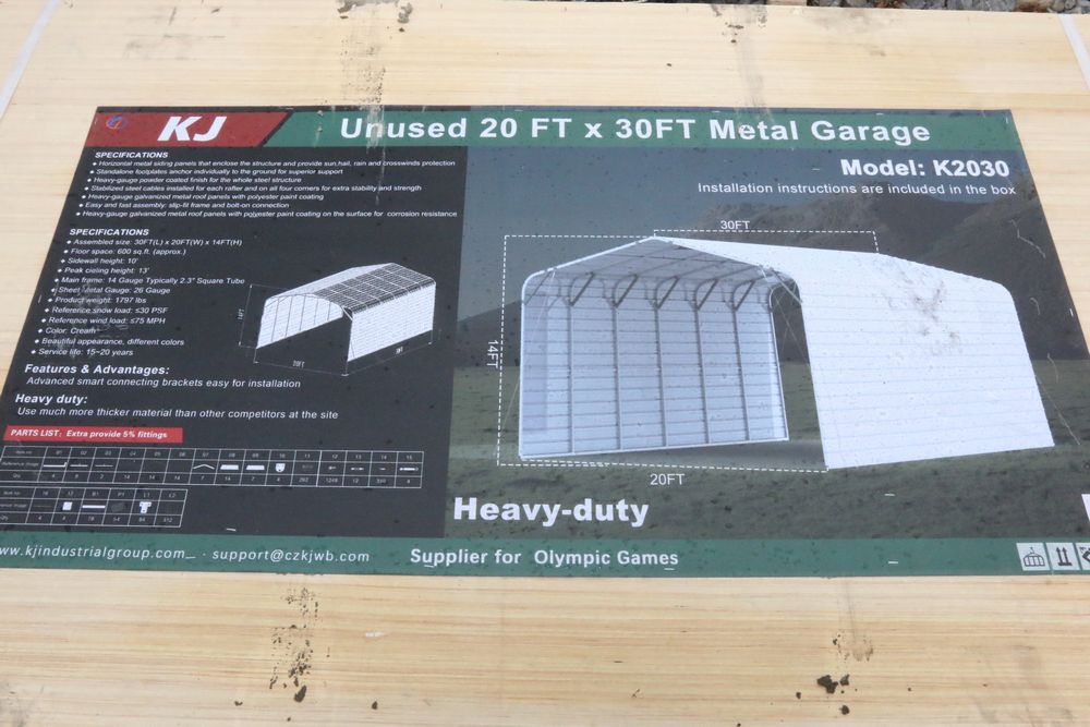 Items include new 2025 CFG Industrial mini excavators, gas powered mini excavators; new 2025 KJ 20' bi-parting iron gates, double garage metal shed, all-steel carport, livestock metal shed, hot-dip galvanized field fence, portable restroom; new MIVA mini excavator attachments: auger, rake, ripper, hedge cutter, hydraulic thumb; tilting excavator bucket; rubber track; new 2025 GIYI skid steer fork attachment; new 2025 SKLP fork extension; new 2025 MIG welder; new Husky black tool locker; new 2025 CFG Industrial mini skid steer backhoe & more. Items are located in Pleasant Valley, NY. Preview is highly recommended.