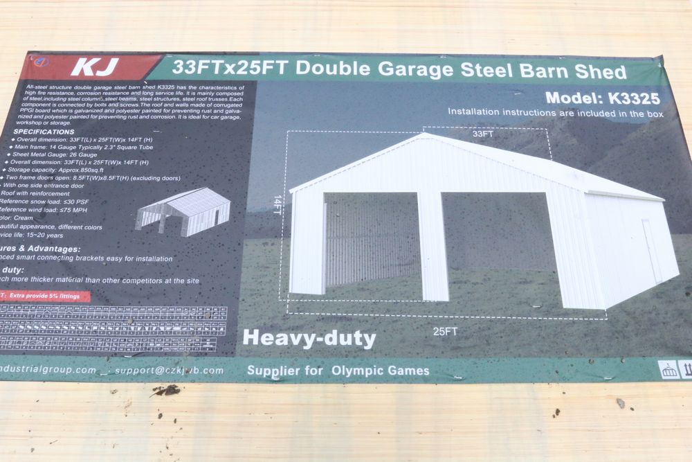 Items include new 2025 CFG Industrial mini excavators, gas powered mini excavators; new 2025 KJ 20' bi-parting iron gates, double garage metal shed, all-steel carport, livestock metal shed, hot-dip galvanized field fence, portable restroom; new MIVA mini excavator attachments: auger, rake, ripper, hedge cutter, hydraulic thumb; tilting excavator bucket; rubber track; new 2025 GIYI skid steer fork attachment; new 2025 SKLP fork extension; new 2025 MIG welder; new Husky black tool locker; new 2025 CFG Industrial mini skid steer backhoe & more. Items are located in Pleasant Valley, NY. Preview is highly recommended.