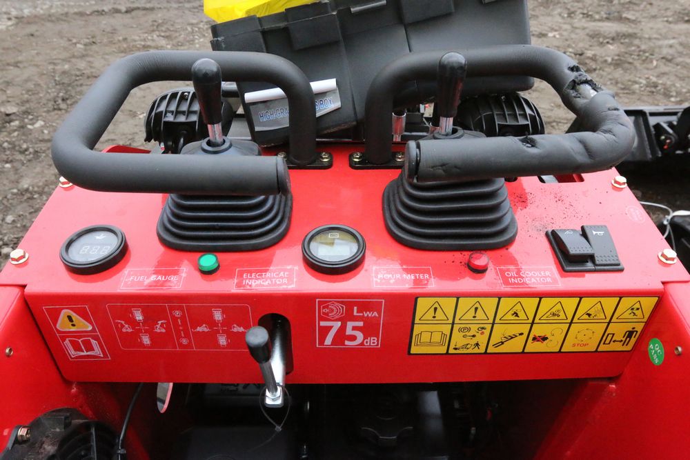 New mini skid steer loader model: 323W, 13.5hp engine, bucket, hand controls, front facing lights, auxiliary hydraulics. Hours reading less then one hour.