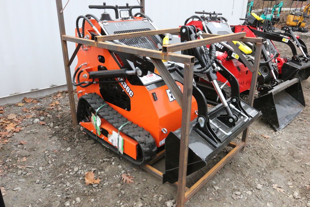 New EGN mini skid steer track loader model: EG36C, 13.5hp engine, bucket, hand controls, front facing lights, auxiliary hydraulics. Hours reading less then one hour.