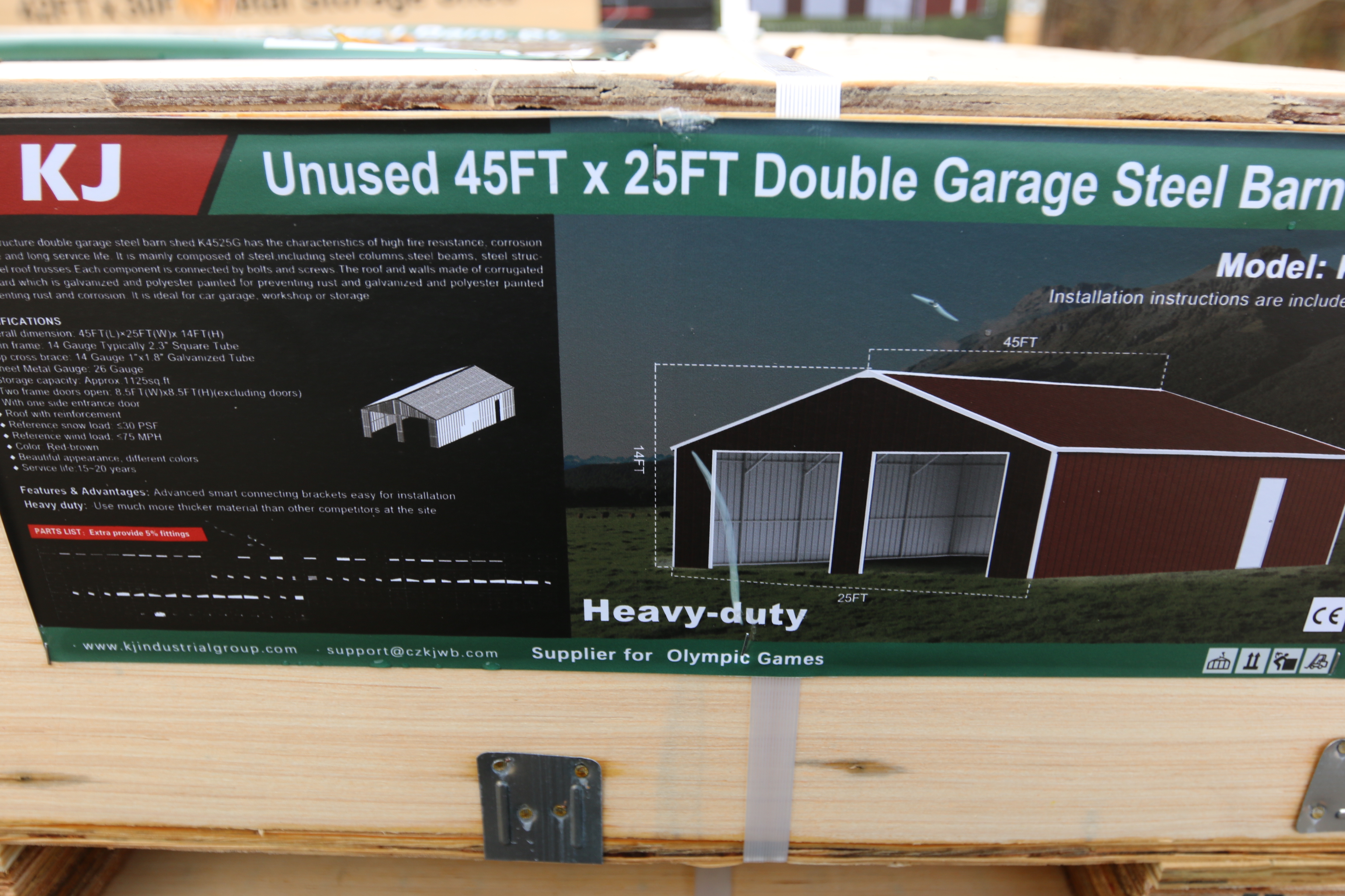 Items include new 2025 CFG Industrial mini excavators, gas powered mini excavators; new 2025 KJ 20' bi-parting iron gates, double garage metal shed, all-steel carport, livestock metal shed, hot-dip galvanized field fence, portable restroom; new MIVA mini excavator attachments: auger, rake, ripper, hedge cutter, hydraulic thumb; tilting excavator bucket; rubber track; new 2025 GIYI skid steer fork attachment; new 2025 SKLP fork extension; new 2025 MIG welder; new Husky black tool locker; new 2025 CFG Industrial mini skid steer backhoe & more. Items are located in Pleasant Valley, NY. Preview is highly recommended.