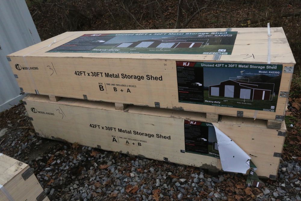 New 2025 Metal Storage Shed 42FT x 30FT Metal Storage Shed model K4230G, in wooden crate.