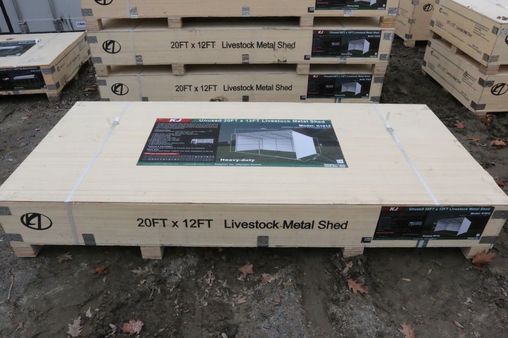 New 2025 KJ unused 20ftx12ft livestock metal shed model K1912, in wood crate.